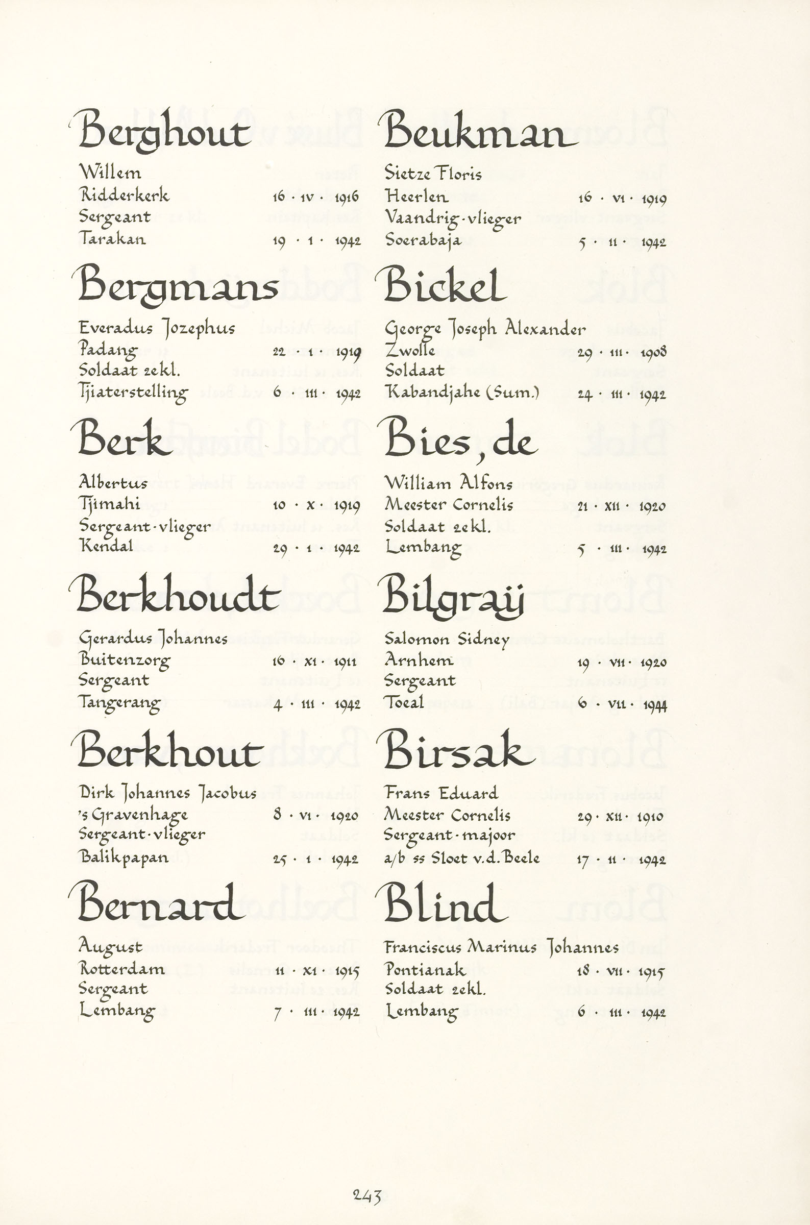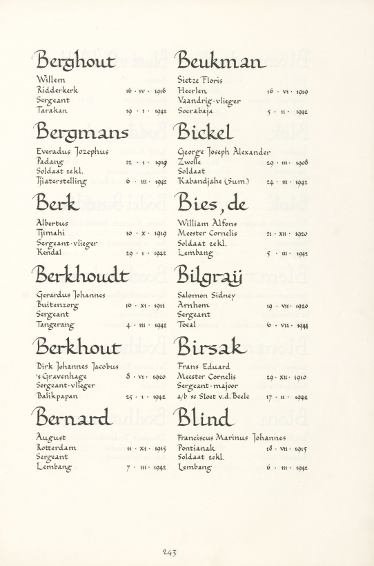 Albertus Bernardus Berk Geboortedatum: 10-10-1919 Geboorteplaats: Tjimahi (Java) Datum van overlijden: 29-01-1942 Plaats van overlijden: Kendal Beroep: Sergeant-vlieger Groep: Koninklijk Nederlands-Indisch Leger en Indisch Verzet Pagina: 243 Ingrid Schodel Joop van Doorn Reactie toevoegen JavaScript moet ingeschakeld zijn om dit formulier te kunnen gebruiken. Comment Over tekstopmaak Platte tekst Geen HTML toegestaan. Regels en alinea's worden automatisch gesplitst. Web- en e-mailadressen worden automatisch naar links omgezet. Laat dit veld leeg blader download Permalink