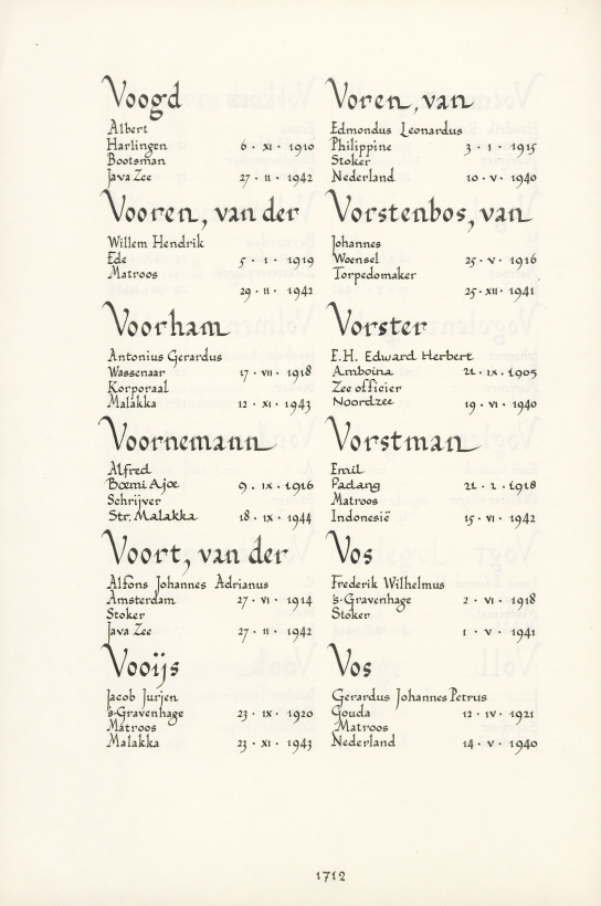 Alfons Johannes Adrianus van der Voort Geboortedatum: 27-06-1914 Geboorteplaats: Amsterdam Datum van overlijden: 27-02-1942 Plaats van overlijden: Javazee Beroep: Stoker Groep: Koninklijke Marine Pagina: 1712 Vanny Alfons Reactie toevoegen JavaScript moet ingeschakeld zijn om dit formulier te kunnen gebruiken. Comment Over tekstopmaak Platte tekst Geen HTML toegestaan. Regels en alinea's worden automatisch gesplitst. Web- en e-mailadressen worden automatisch naar links omgezet. Laat dit veld leeg blader download Permalink
