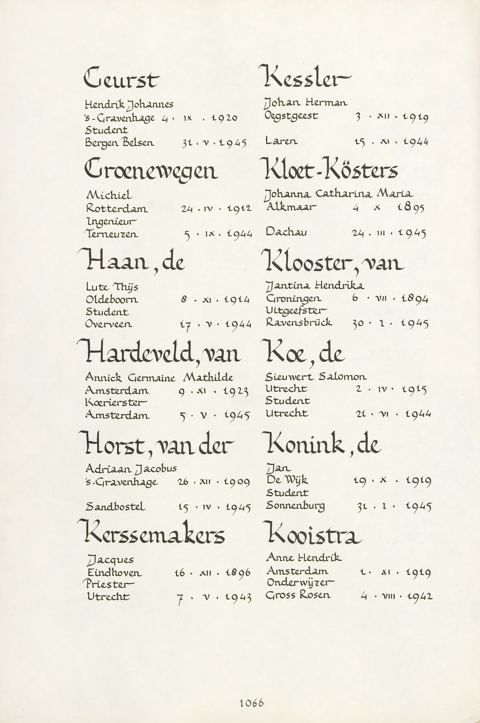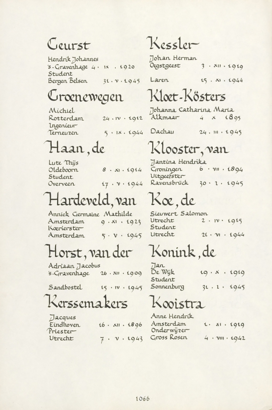 Annick Germaine Mathilde van Hardeveld Geboortedatum: 09-11-1923 Geboorteplaats: Amsterdam Datum van overlijden: 05-05-1945 Plaats van overlijden: Amsterdam Beroep: Koerierster Groep: Verzet Pagina: 1066 mo R. Janssen Annick van Hardeveld(1959) piet ditmeijer Reactie toevoegen JavaScript moet ingeschakeld zijn om dit formulier te kunnen gebruiken. Comment Over tekstopmaak Platte tekst Geen HTML toegestaan. Regels en alinea's worden automatisch gesplitst. Web- en e-mailadressen worden automatisch naar links omgezet. Laat dit veld leeg blader download Permalink