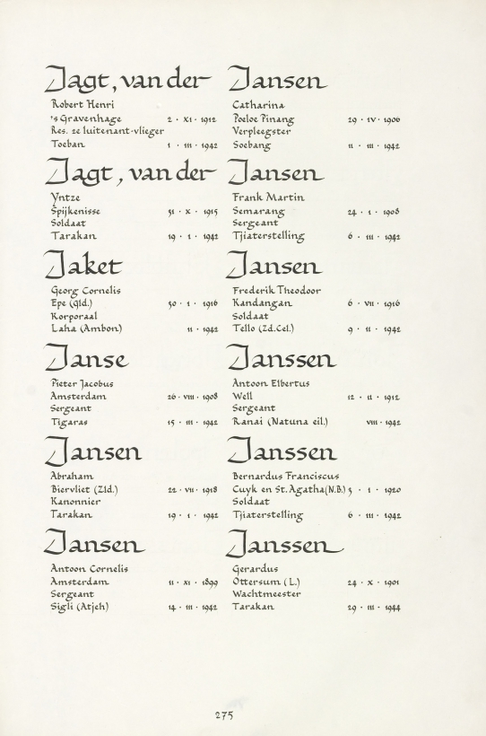 Antoon Elbertus Janssen Geboortedatum: 12-02-1912 Geboorteplaats: Well Datum van overlijden: 20-08-1942 Plaats van overlijden: Ranai (Natuna eil.) Beroep: Sergeant Groep: Koninklijk Nederlands-Indisch Leger en Indisch Verzet Pagina: 275 Archief Well Limburg Marleen Timmermans-Koenen Thea Könst-Janssen Wies janssen Willie hamers janssen Rieni bremmers Janssen Ceciel Lamers (dochter van Anneke Mercus) Geert van der Velden (zoon van Agnes Mercus) Corrie Boeser Ger Peters Sjef Verrijdt Marie-Anne Reactie toevoegen JavaScript moet ingeschakeld zijn om dit formulier te kunnen gebruiken. Comment Over tekstopmaak Platte tekst Geen HTML toegestaan. Regels en alinea's worden automatisch gesplitst. Web- en e-mailadressen worden automatisch naar links omgezet. Laat dit veld leeg blader download Permalink