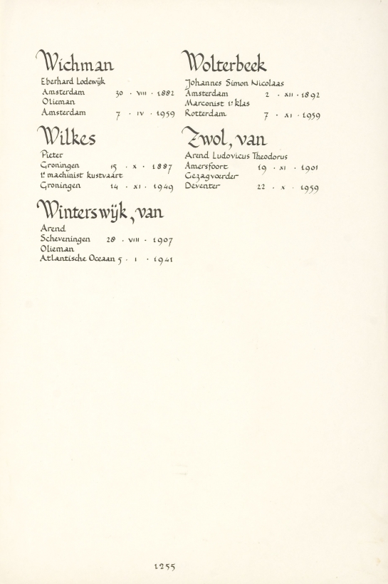 Arend van Winterswijk Geboortedatum: 28-08-1907 Geboorteplaats: Scheveningen Datum van overlijden: 05-01-1941 Plaats van overlijden: Atlantische Oceaan Beroep: Olieman Groep: Koopvaardij Pagina: 1255 E. Harmelink Reactie toevoegen JavaScript moet ingeschakeld zijn om dit formulier te kunnen gebruiken. Comment Over tekstopmaak Platte tekst Geen HTML toegestaan. Regels en alinea's worden automatisch gesplitst. Web- en e-mailadressen worden automatisch naar links omgezet. Laat dit veld leeg blader download Permalink