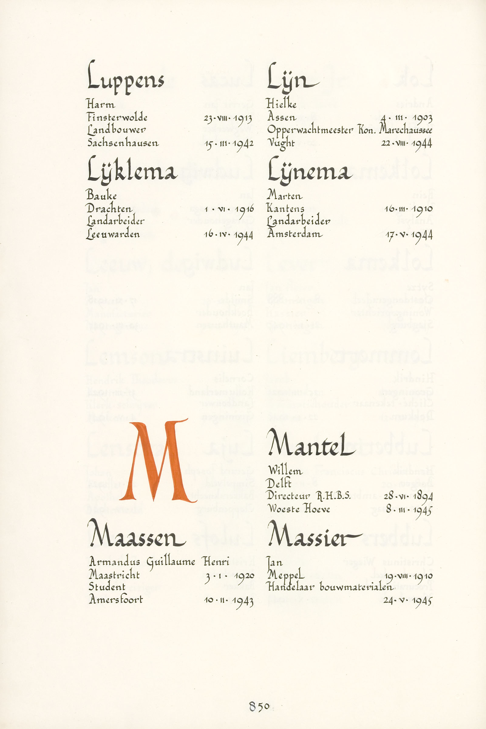 Armandus Guillaume Henri Maassen Geboortedatum: 03-01-1920 Geboorteplaats: Maastricht Datum van overlijden: 10-02-1943 Plaats van overlijden: Amersfoort Beroep: Student Groep: Verzet Pagina: 850 H.a.th Maassen Marc Maassen Erik van Rijsselt Reactie toevoegen JavaScript moet ingeschakeld zijn om dit formulier te kunnen gebruiken. Comment Over tekstopmaak Platte tekst Geen HTML toegestaan. Regels en alinea's worden automatisch gesplitst. Web- en e-mailadressen worden automatisch naar links omgezet. Laat dit veld leeg blader download Permalink