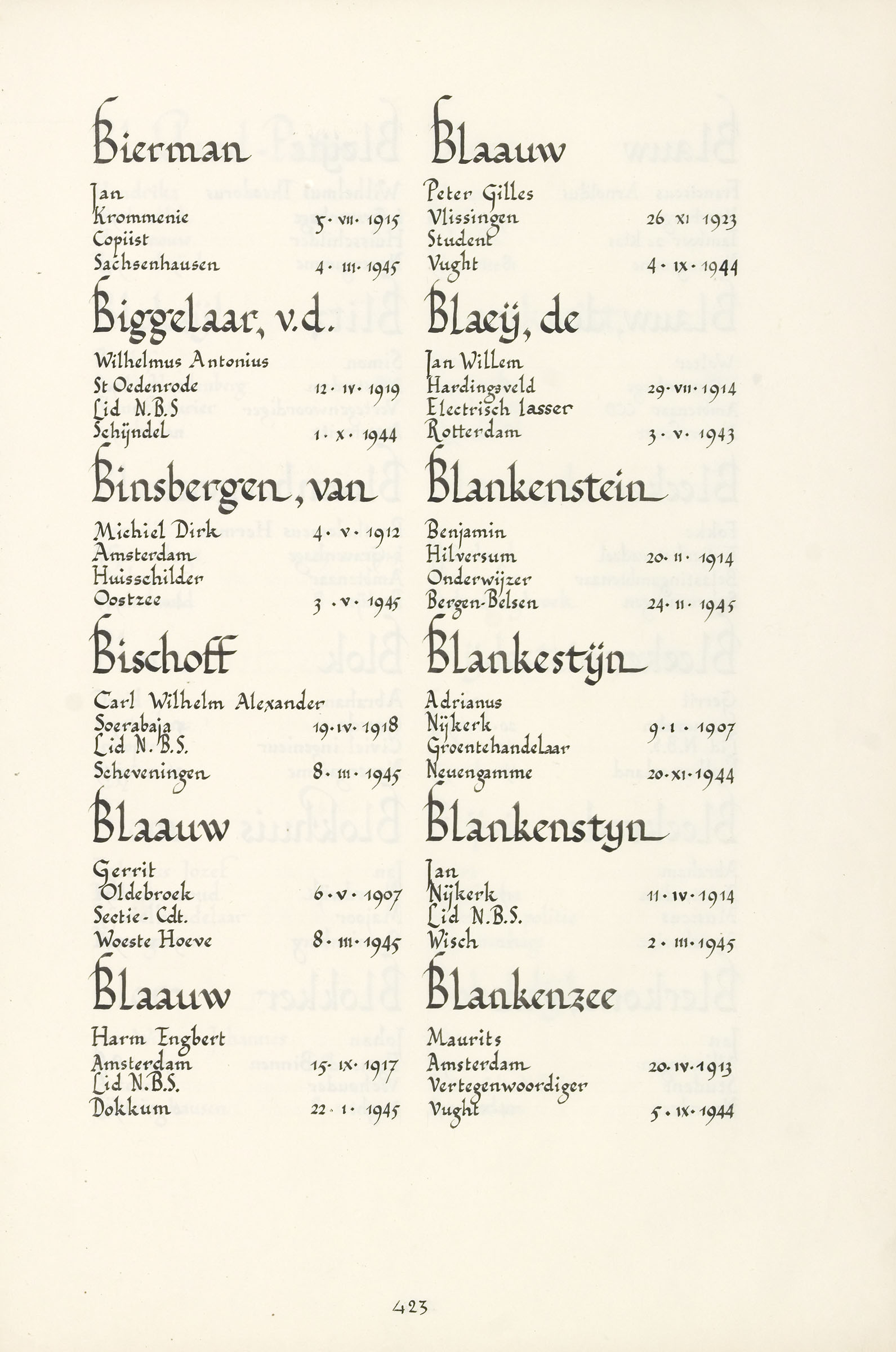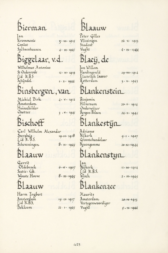 Benjamin Blankenstein Geboortedatum: 20-02-1914 Geboorteplaats: Hilversum Datum van overlijden: 24-02-1945 Plaats van overlijden: Bergen-Belsen Beroep: Onderwijzer Groep: Verzet Pagina: 423 Theo Blankenstein Do Blankestijn Alex Asmund Weller gelinked via zijn vrouw. Mijn moeder is een van Klingeren Reactie toevoegen JavaScript moet ingeschakeld zijn om dit formulier te kunnen gebruiken. Comment Over tekstopmaak Platte tekst Geen HTML toegestaan. Regels en alinea's worden automatisch gesplitst. Web- en e-mailadressen worden automatisch naar links omgezet. Laat dit veld leeg blader download Permalink