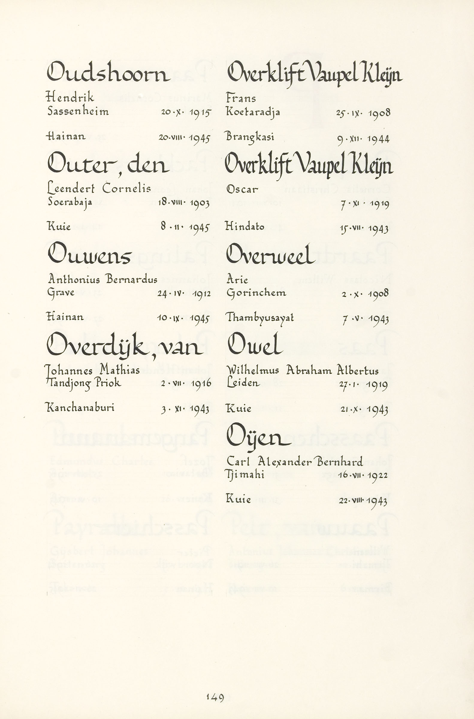 Carl Alexander Bernard Oijen Geboortedatum: 16-07-1922 Geboorteplaats: Tjimahi (Java) Datum van overlijden: 22-08-1943 Plaats van overlijden: Kuye (Thailand) Beroep: Soldaat Groep: Koninklijk Nederlands-Indisch Leger en Indisch Verzet Pagina: 149 Reactie toevoegen JavaScript moet ingeschakeld zijn om dit formulier te kunnen gebruiken. Comment Over tekstopmaak Platte tekst Geen HTML toegestaan. Regels en alinea's worden automatisch gesplitst. Web- en e-mailadressen worden automatisch naar links omgezet. Laat dit veld leeg blader download Permalink