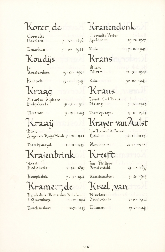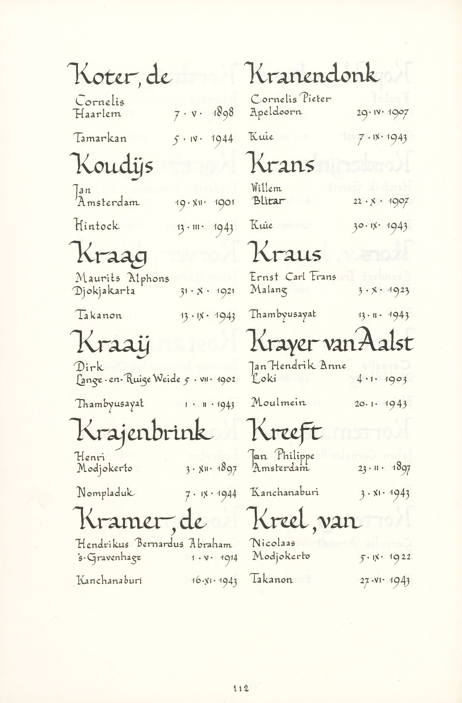 Cornelis Adrianus de Koter Geboortedatum: 07-05-1898 Geboorteplaats: Haarlem Datum van overlijden: 05-04-1944 Plaats van overlijden: Tamarkan (Thailand) Beroep: Sergeant Groep: Koninklijk Nederlands-Indisch Leger en Indisch Verzet Pagina: 112 Andre de Koter Reactie toevoegen JavaScript moet ingeschakeld zijn om dit formulier te kunnen gebruiken. Comment Over tekstopmaak Platte tekst Geen HTML toegestaan. Regels en alinea's worden automatisch gesplitst. Web- en e-mailadressen worden automatisch naar links omgezet. Laat dit veld leeg blader download Permalink