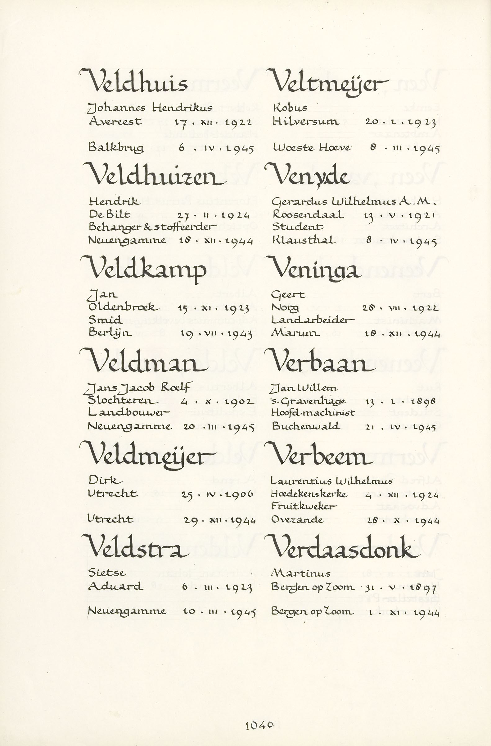Dirk Veltmeijer Geboortedatum: 25-04-1906 Geboorteplaats: Utrecht Datum van overlijden: 29-12-1944 Plaats van overlijden: Utrecht Beroep: Grondwerker Groep: Verzet Pagina: 1040 henny van der hout Reactie toevoegen JavaScript moet ingeschakeld zijn om dit formulier te kunnen gebruiken. Comment Over tekstopmaak Platte tekst Geen HTML toegestaan. Regels en alinea's worden automatisch gesplitst. Web- en e-mailadressen worden automatisch naar links omgezet. Laat dit veld leeg blader download Permalink