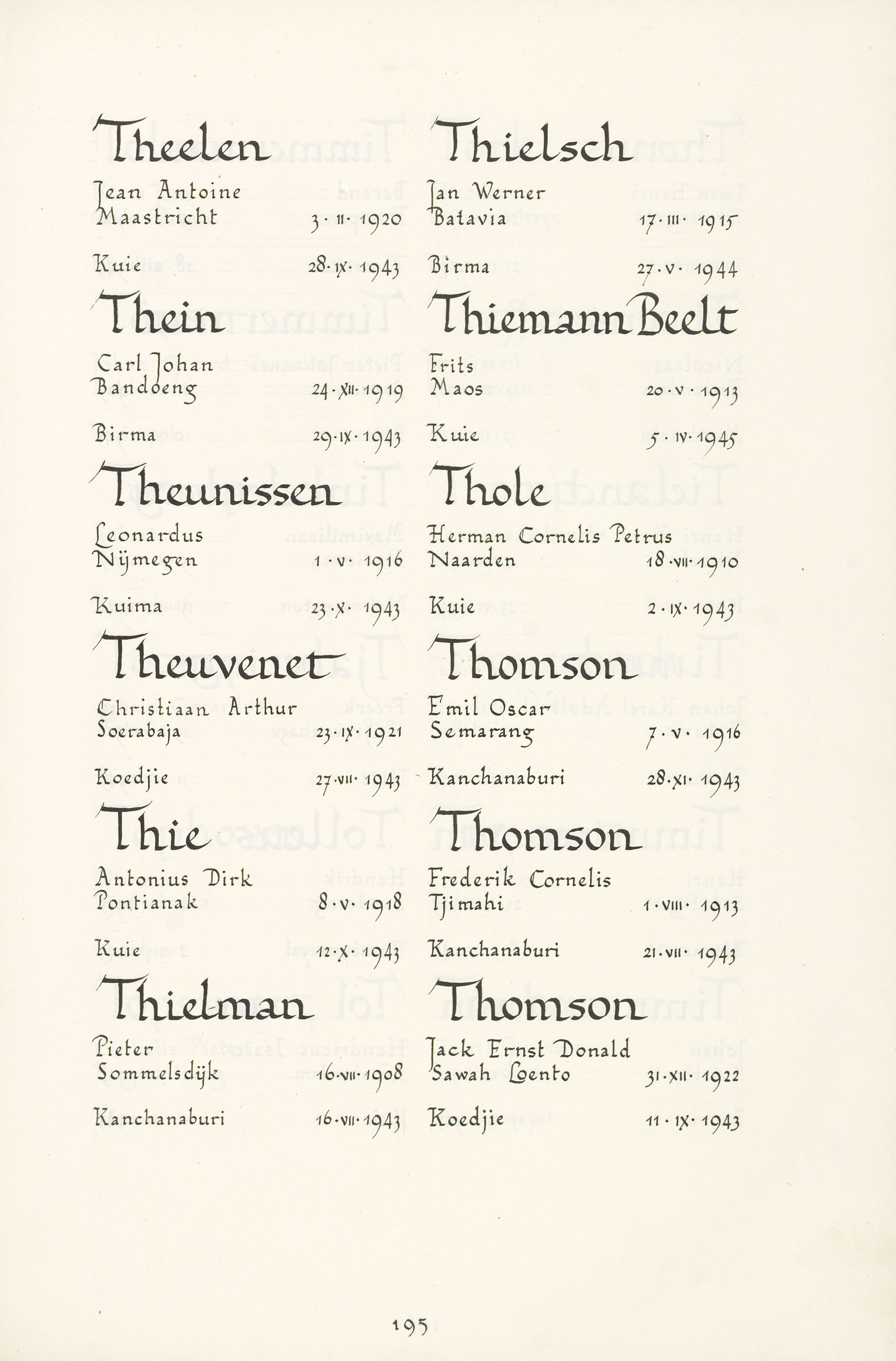 Emil Oscar Thomson Geboortedatum: 07-05-1916 Geboorteplaats: Semarang (Java) Datum van overlijden: 28-11-1943 Plaats van overlijden: Kanchanaburi (Thailand) Beroep: Sergeant Groep: Koninklijk Nederlands-Indisch Leger en Indisch Verzet Pagina: 195 Reactie toevoegen JavaScript moet ingeschakeld zijn om dit formulier te kunnen gebruiken. Comment Over tekstopmaak Platte tekst Geen HTML toegestaan. Regels en alinea's worden automatisch gesplitst. Web- en e-mailadressen worden automatisch naar links omgezet. Laat dit veld leeg blader download Permalink