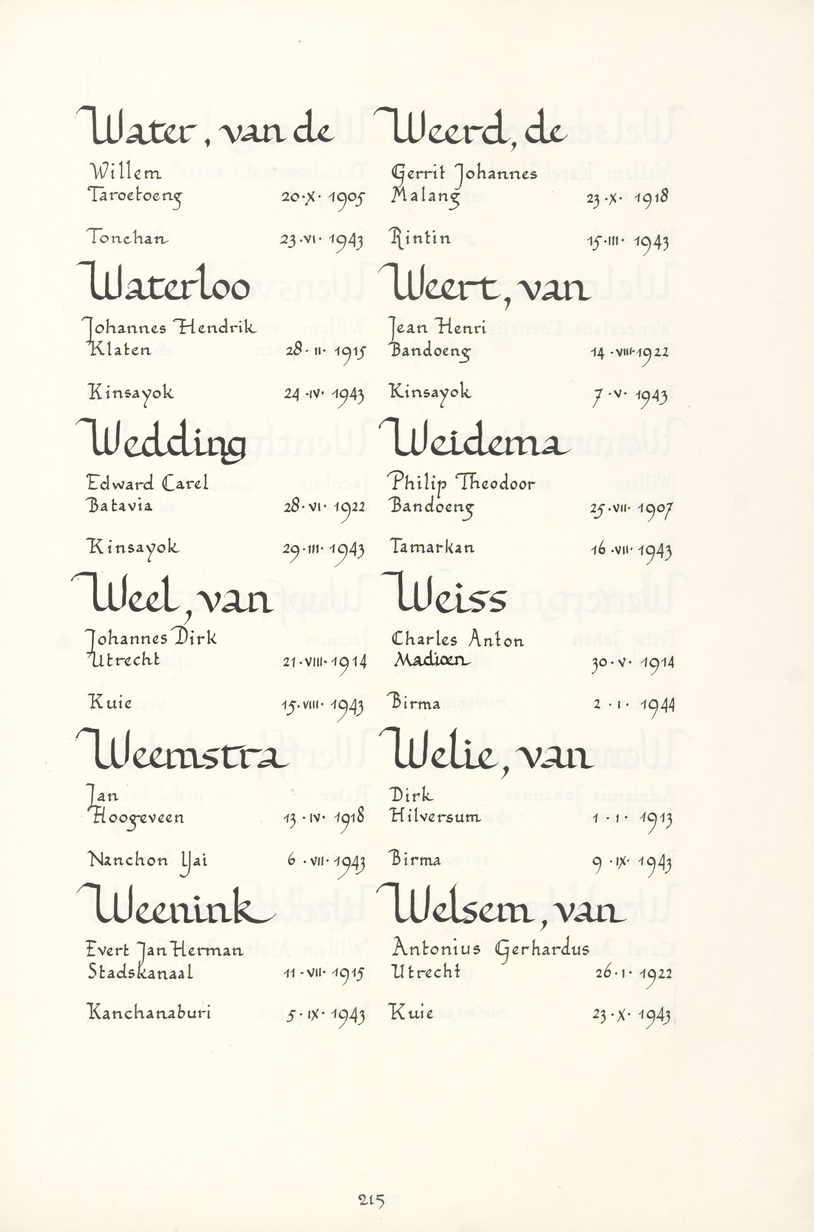 Evert Jan Herman Weenink Geboortedatum: 11-07-1915 Geboorteplaats: Stadskanaal Datum van overlijden: 05-09-1943 Plaats van overlijden: Kanchanaburi (Thailand) Beroep: Sergeant Groep: Koninklijk Nederlands-Indisch Leger en Indisch Verzet Pagina: 215 Reactie toevoegen JavaScript moet ingeschakeld zijn om dit formulier te kunnen gebruiken. Comment Over tekstopmaak Platte tekst Geen HTML toegestaan. Regels en alinea's worden automatisch gesplitst. Web- en e-mailadressen worden automatisch naar links omgezet. Laat dit veld leeg blader download Permalink