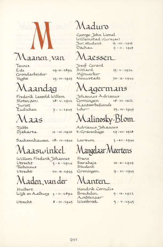 George John Lionel Maduro Geboortedatum: 15-07-1916 Geboorteplaats: Willemstad (Curaçao) Datum van overlijden: 09-02-1945 Plaats van overlijden: Dachau Beroep: Juridisch student Groep: Verzet Pagina: 991 Roberto Brazao Gomes René Zwart Madeline Albertus van Twist Marianne -jM-Vu- R.P.Tromp Gerrit Reijnen 4en5meiCAZ Amsterdam Stichting NusanataraAmsterdam Orlando Braaf Mike Emons Reinoud en Kathleen Brandt Annemiek de Groot saskia luckmann-meijer Sandra Sue thijmen Desiree Croes Desiree Croes Lola Tromp Vinkes Wil wolf Stichting Stadsdorp Goud Michele Russel-Capriles roderick al Estella Reactie toevoegen JavaScript moet ingeschakeld zijn om dit formulier te kunnen gebruiken. Comment Over tekstopmaak Platte tekst Geen HTML toegestaan. Regels en alinea's worden automatisch gesplitst. Web- en e-mailadressen worden automatisch naar links omgezet. Laat dit veld leeg blader download Permalink
