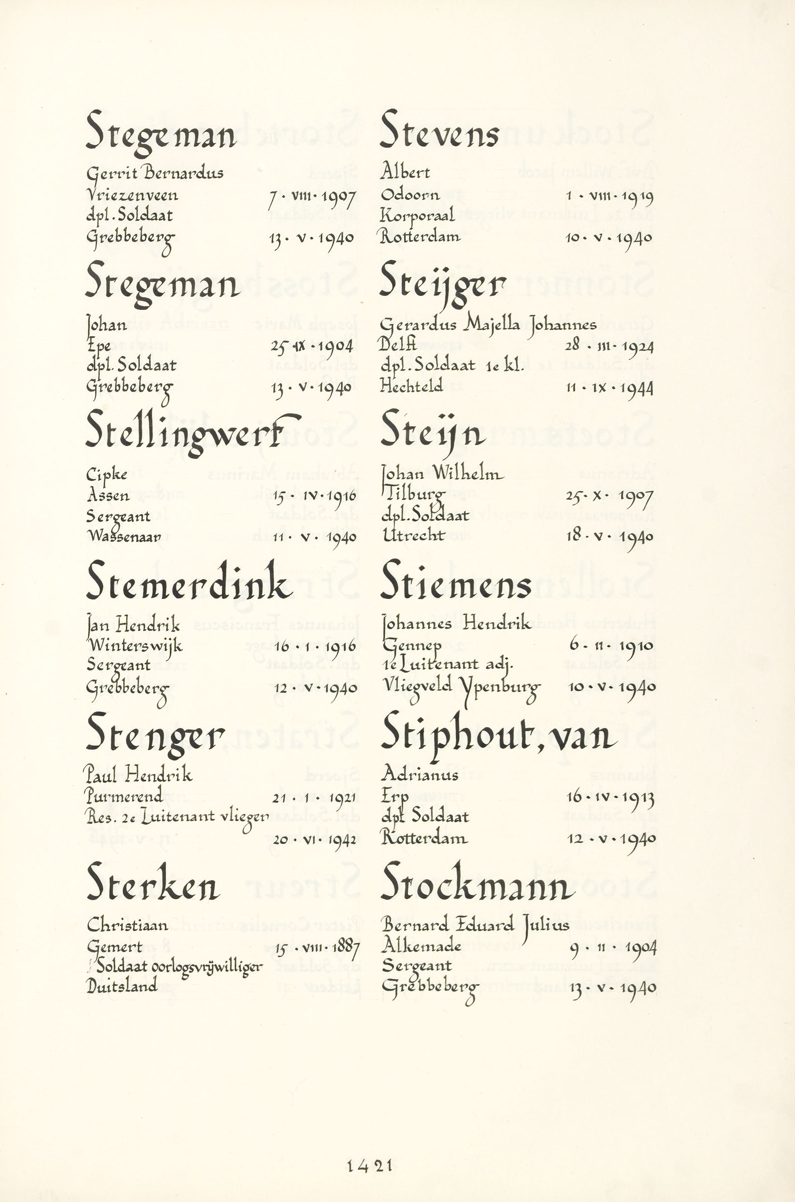Gerrit Bernardus Stegeman Geboortedatum: 07-08-1907 Geboorteplaats: Vriezenveen Datum van overlijden: 13-05-1940 Plaats van overlijden: Grebbeberg Beroep: dpl. Soldaat Groep: Koninklijke Landmacht Pagina: 1421 Jaap Beets Job Jansen Reactie toevoegen JavaScript moet ingeschakeld zijn om dit formulier te kunnen gebruiken. Comment Over tekstopmaak Platte tekst Geen HTML toegestaan. Regels en alinea's worden automatisch gesplitst. Web- en e-mailadressen worden automatisch naar links omgezet. Laat dit veld leeg blader download Permalink