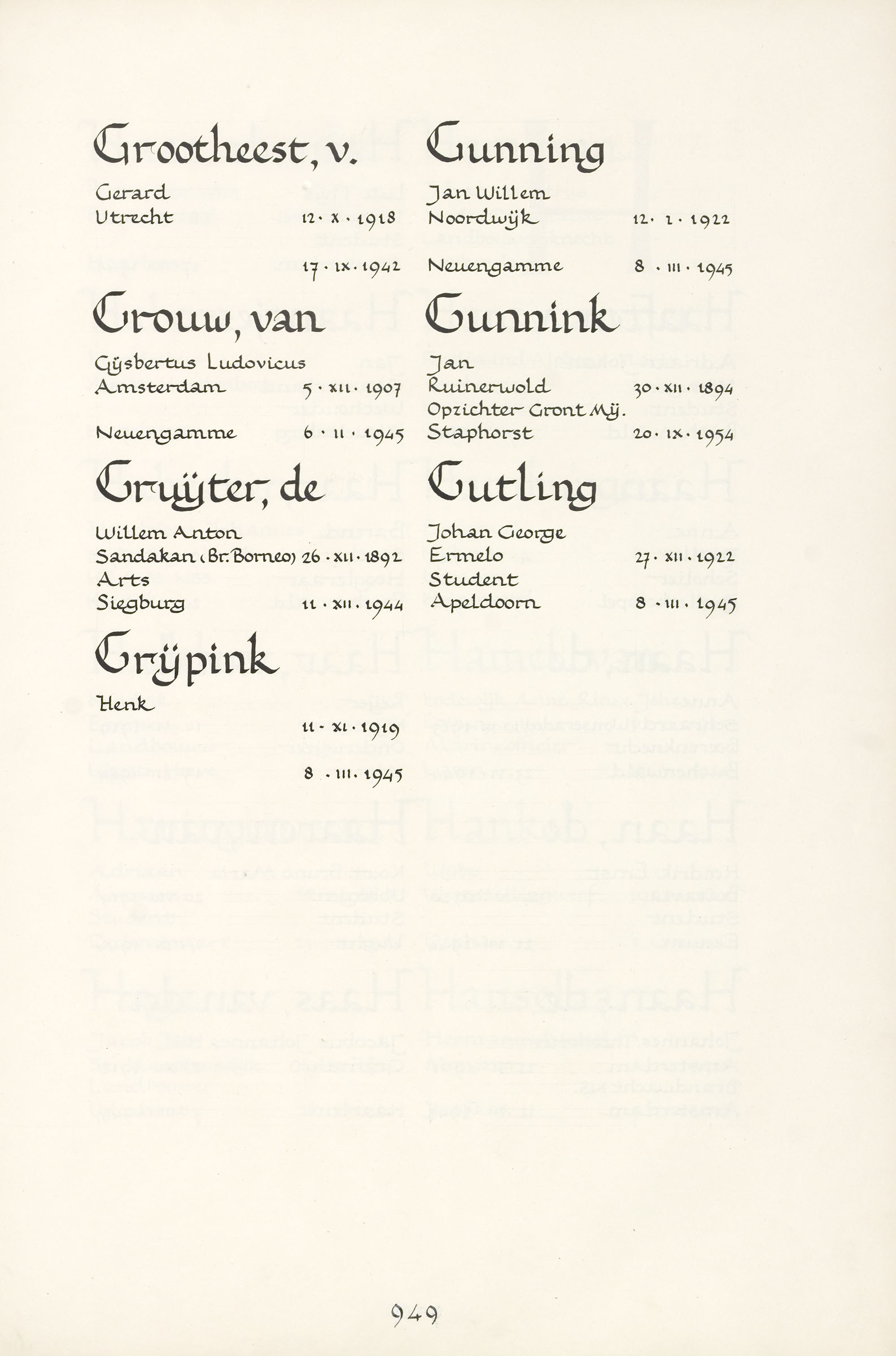Gijsbertus Ludovicus van Grouw Geboortedatum: 05-12-1907 Geboorteplaats: Amsterdam Datum van overlijden: 06-02-1945 Plaats van overlijden: Neuengamme Beroep: Badmeester Groep: Verzet Pagina: 949 herman van grouw Casper Sjoerd van Grouw Dennis van Grouw Anita Meier Brian Holleman Reactie toevoegen JavaScript moet ingeschakeld zijn om dit formulier te kunnen gebruiken. Comment Over tekstopmaak Platte tekst Geen HTML toegestaan. Regels en alinea's worden automatisch gesplitst. Web- en e-mailadressen worden automatisch naar links omgezet. Laat dit veld leeg blader download Permalink