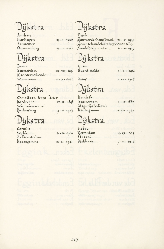 Hendrik Dijkstra Geboortedatum: 01-09-1887 Geboorteplaats: Amsterdam Datum van overlijden: 12-06-1942 Plaats van overlijden: Neuengamme Beroep: Magazijnbediende Groep: Verzet Pagina: 469 Marcel Peperkamp Reactie toevoegen JavaScript moet ingeschakeld zijn om dit formulier te kunnen gebruiken. Comment Over tekstopmaak Platte tekst Geen HTML toegestaan. Regels en alinea's worden automatisch gesplitst. Web- en e-mailadressen worden automatisch naar links omgezet. Laat dit veld leeg blader download Permalink