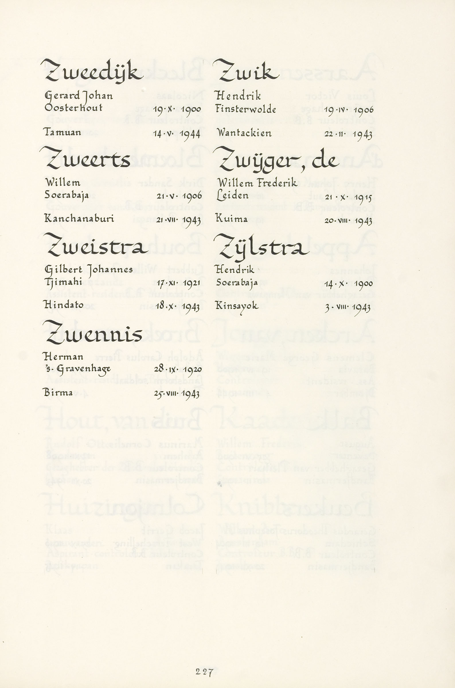 Hendrik Zijlstra Geboortedatum: 14-10-1900 Geboorteplaats: Soerabaja (Java) Datum van overlijden: 03-08-1943 Plaats van overlijden: Kinsayok (Thailand) Beroep: Sergeant Groep: Koninklijk Nederlands-Indisch Leger en Indisch Verzet Pagina: 227 Reactie toevoegen JavaScript moet ingeschakeld zijn om dit formulier te kunnen gebruiken. Comment Over tekstopmaak Platte tekst Geen HTML toegestaan. Regels en alinea's worden automatisch gesplitst. Web- en e-mailadressen worden automatisch naar links omgezet. Laat dit veld leeg blader download Permalink