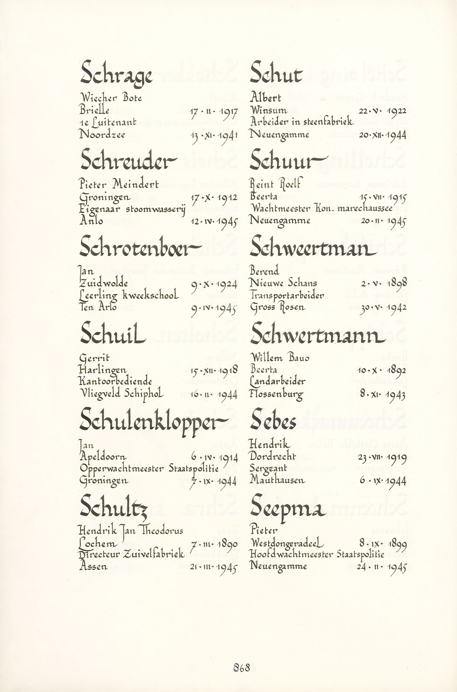 Hendrik Jan Theodorus Schultz Geboortedatum: 07-03-1890 Geboorteplaats: Lochem Datum van overlijden: 21-03-1945 Plaats van overlijden: Assen Beroep: Directeur zuivelfabriek Groep: Verzet Pagina: 868 Hendrik Jan Theodorus Nieuwenhuis Irene Nieuwenhuis Reactie toevoegen JavaScript moet ingeschakeld zijn om dit formulier te kunnen gebruiken. Comment Over tekstopmaak Platte tekst Geen HTML toegestaan. Regels en alinea's worden automatisch gesplitst. Web- en e-mailadressen worden automatisch naar links omgezet. Laat dit veld leeg blader download Permalink