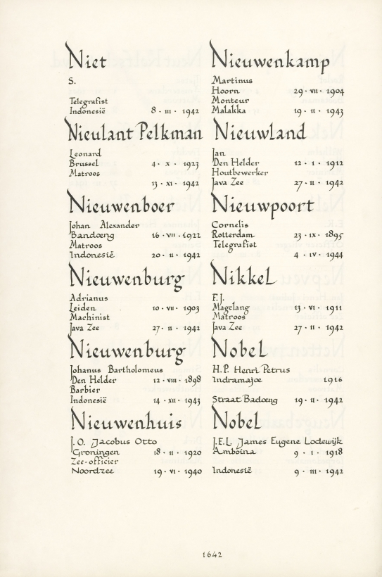 Henri Petrus Nobel Geboortedatum: 01-11-1916 Geboorteplaats: Indramajoe Datum van overlijden: 19-02-1942 Plaats van overlijden: Straat Badoeng Beroep: Olieman Groep: Koninklijke Marine Pagina: 1642 Reactie toevoegen JavaScript moet ingeschakeld zijn om dit formulier te kunnen gebruiken. Comment Over tekstopmaak Platte tekst Geen HTML toegestaan. Regels en alinea's worden automatisch gesplitst. Web- en e-mailadressen worden automatisch naar links omgezet. Laat dit veld leeg blader download Permalink
