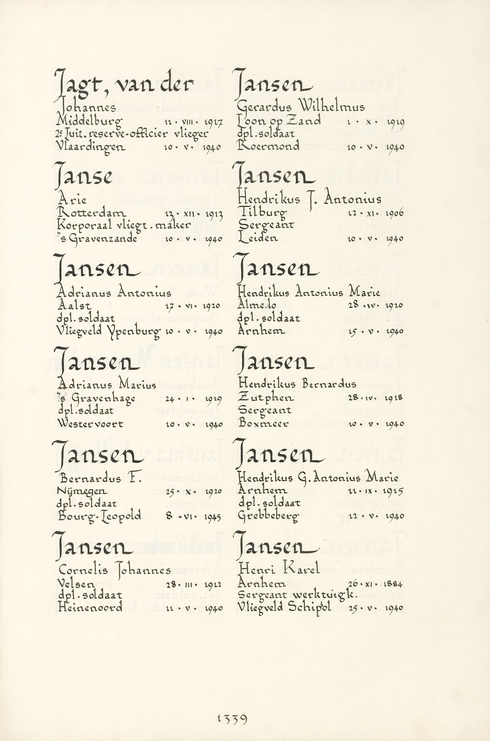 Henricus Joannes Antonius Jansen Geboortedatum: 12-11-1906 Geboorteplaats: Tilburg Datum van overlijden: 10-05-1940 Plaats van overlijden: Leiden Beroep: Sergeant Groep: Koninklijke Landmacht Pagina: 1339 Hannie Janse Reactie toevoegen JavaScript moet ingeschakeld zijn om dit formulier te kunnen gebruiken. Comment Over tekstopmaak Platte tekst Geen HTML toegestaan. Regels en alinea's worden automatisch gesplitst. Web- en e-mailadressen worden automatisch naar links omgezet. Laat dit veld leeg blader download Permalink