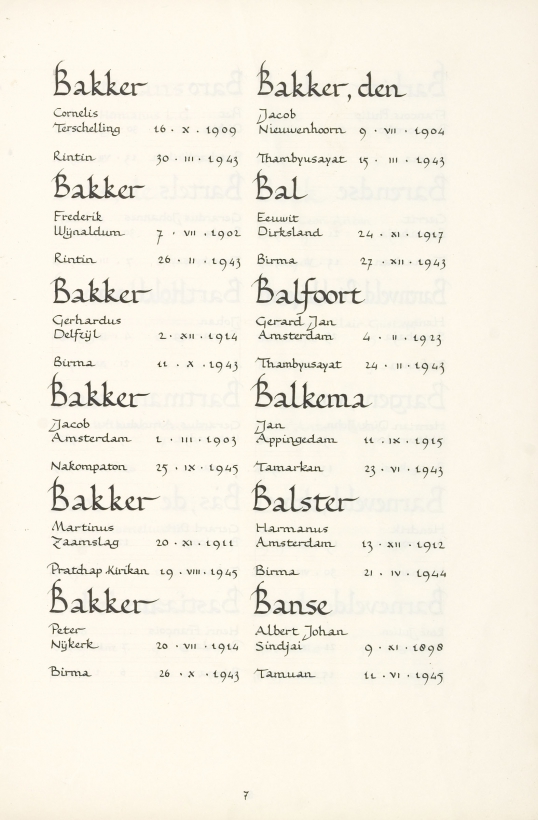 Jacob den Bakker Geboortedatum: 09-07-1904 Geboorteplaats: Nieuwenhoorn Datum van overlijden: 15-03-1943 Plaats van overlijden: Thambyusayat (Birma) Beroep: Sergeant-majoor Genie Groep: Koninklijk Nederlands-Indisch Leger en Indisch Verzet Pagina: 7 Bas Aalders Marie-Anne Reactie toevoegen JavaScript moet ingeschakeld zijn om dit formulier te kunnen gebruiken. Comment Over tekstopmaak Platte tekst Geen HTML toegestaan. Regels en alinea's worden automatisch gesplitst. Web- en e-mailadressen worden automatisch naar links omgezet. Laat dit veld leeg blader download Permalink