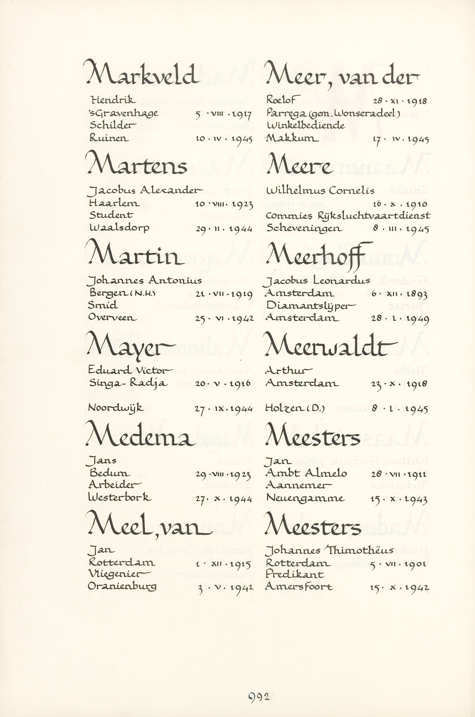 Jacobus Alexander Martens Geboortedatum: 10-08-1923 Geboorteplaats: Haarlem Datum van overlijden: 29-02-1944 Plaats van overlijden: Wassenaar, Waalsdorpervlakte Beroep: Student Groep: Verzet Pagina: 992 Joost Martens Stichting Oranje Vrijbuiters Jacques Martens Reactie toevoegen JavaScript moet ingeschakeld zijn om dit formulier te kunnen gebruiken. Comment Over tekstopmaak Platte tekst Geen HTML toegestaan. Regels en alinea's worden automatisch gesplitst. Web- en e-mailadressen worden automatisch naar links omgezet. Laat dit veld leeg blader download Permalink