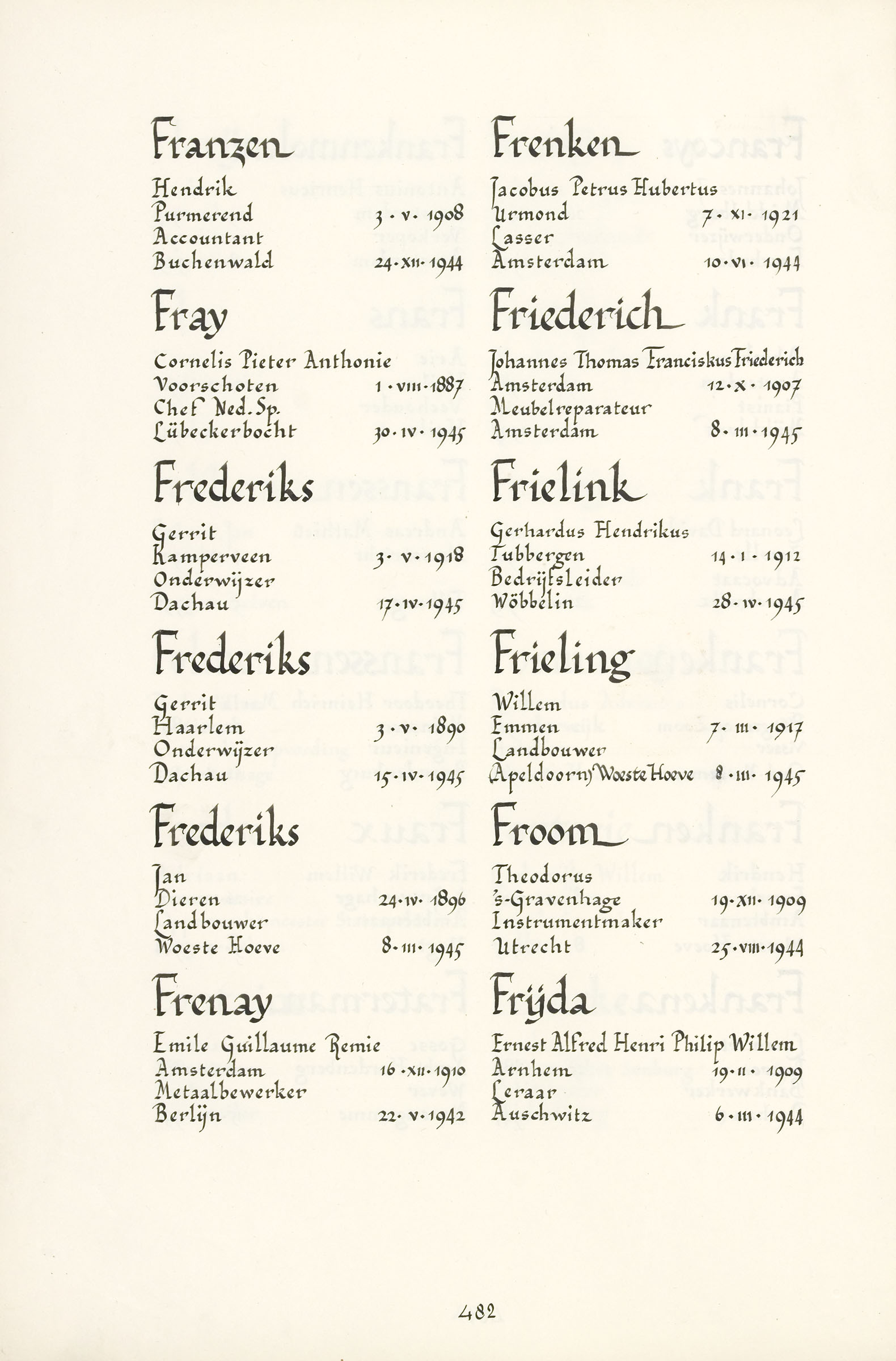 Jacobus Petrus Hubertus Frenken Geboortedatum: 07-11-1921 Geboorteplaats: Urmond Datum van overlijden: 10-06-1944 Plaats van overlijden: Overveen Beroep: Lasser Groep: Verzet Pagina: 482 J van Dijck-van den Berg, nichtje R van den Berg, achterneef hoi ik ben op zoek naar familieleden van JPH frenken heb namelijk een stolperstein aangevraagd voor legging 4-5-2025 in Urmond b Reactie toevoegen JavaScript moet ingeschakeld zijn om dit formulier te kunnen gebruiken. Comment Over tekstopmaak Platte tekst Geen HTML toegestaan. Regels en alinea's worden automatisch gesplitst. Web- en e-mailadressen worden automatisch naar links omgezet. Laat dit veld leeg blader download Permalink