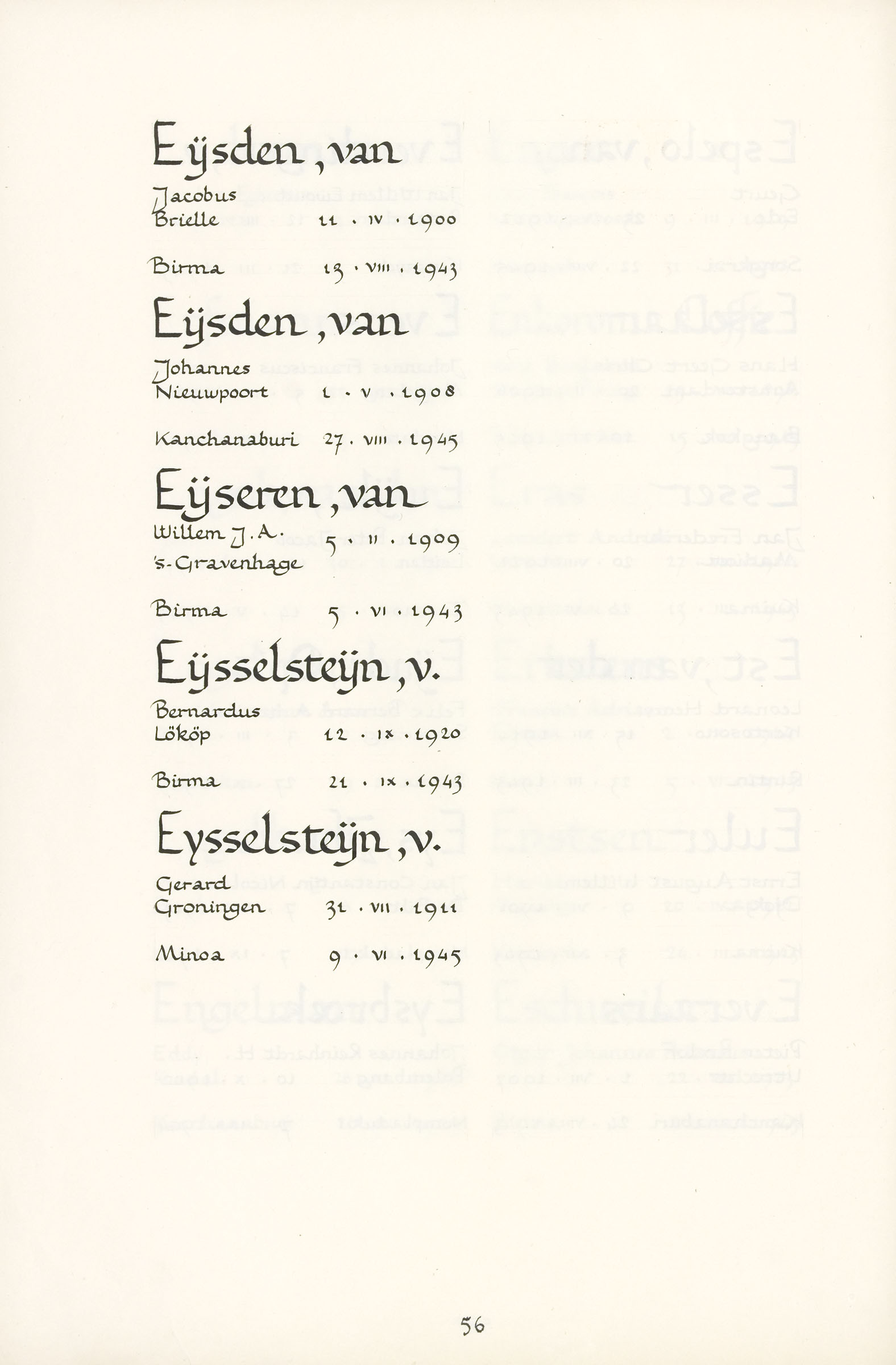Jacobus van Eijsden Geboortedatum: 11-04-1900 Geboorteplaats: Brielle Datum van overlijden: 13-08-1943 Plaats van overlijden: Birma Beroep: Soldaat Groep: Koninklijk Nederlands-Indisch Leger en Indisch Verzet Pagina: 56 Reactie toevoegen JavaScript moet ingeschakeld zijn om dit formulier te kunnen gebruiken. Comment Over tekstopmaak Platte tekst Geen HTML toegestaan. Regels en alinea's worden automatisch gesplitst. Web- en e-mailadressen worden automatisch naar links omgezet. Laat dit veld leeg blader download Permalink
