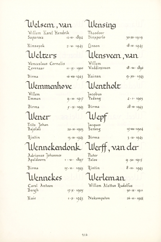Jacques Emile Wepf Geboortedatum: 15-08-1904 Geboorteplaats: Semarang (Java) Datum van overlijden: 03-11-1943 Plaats van overlijden: Birma Beroep: Soldaat Groep: Koninklijk Nederlands-Indisch Leger en Indisch Verzet Pagina: 216 Reactie toevoegen JavaScript moet ingeschakeld zijn om dit formulier te kunnen gebruiken. Comment Over tekstopmaak Platte tekst Geen HTML toegestaan. Regels en alinea's worden automatisch gesplitst. Web- en e-mailadressen worden automatisch naar links omgezet. Laat dit veld leeg blader download Permalink