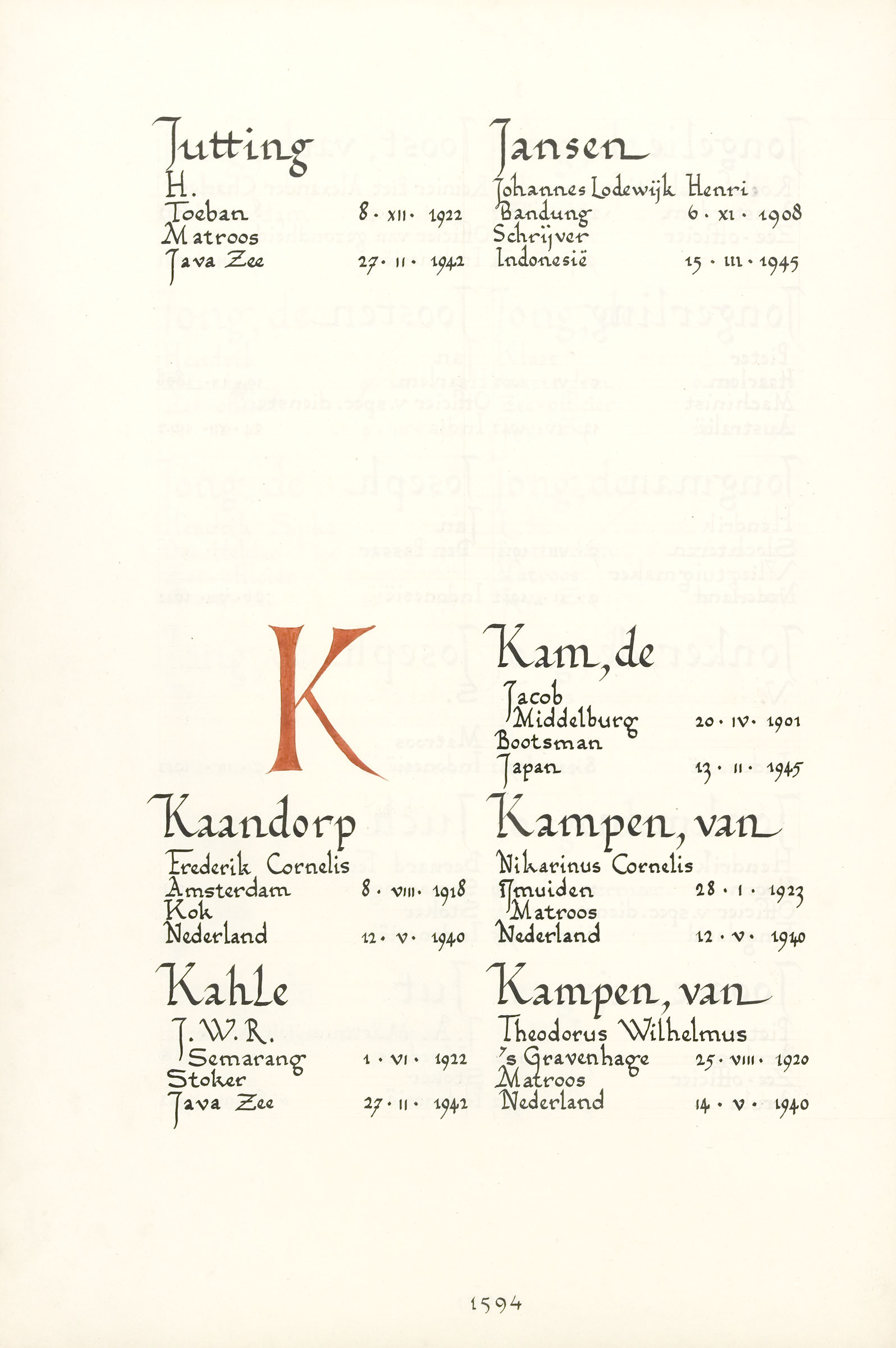 James William Roland Kahle Geboortedatum: 01-06-1922 Geboorteplaats: Semarang (Java) Datum van overlijden: 27-02-1942 Plaats van overlijden: Javazee Beroep: Stoker Groep: Koninklijke Marine Pagina: 1594 Reinier Kahle Ben Kahle Ravi en Reza Kahle Maree Maree Indy Reactie toevoegen JavaScript moet ingeschakeld zijn om dit formulier te kunnen gebruiken. Comment Over tekstopmaak Platte tekst Geen HTML toegestaan. Regels en alinea's worden automatisch gesplitst. Web- en e-mailadressen worden automatisch naar links omgezet. Laat dit veld leeg blader download Permalink