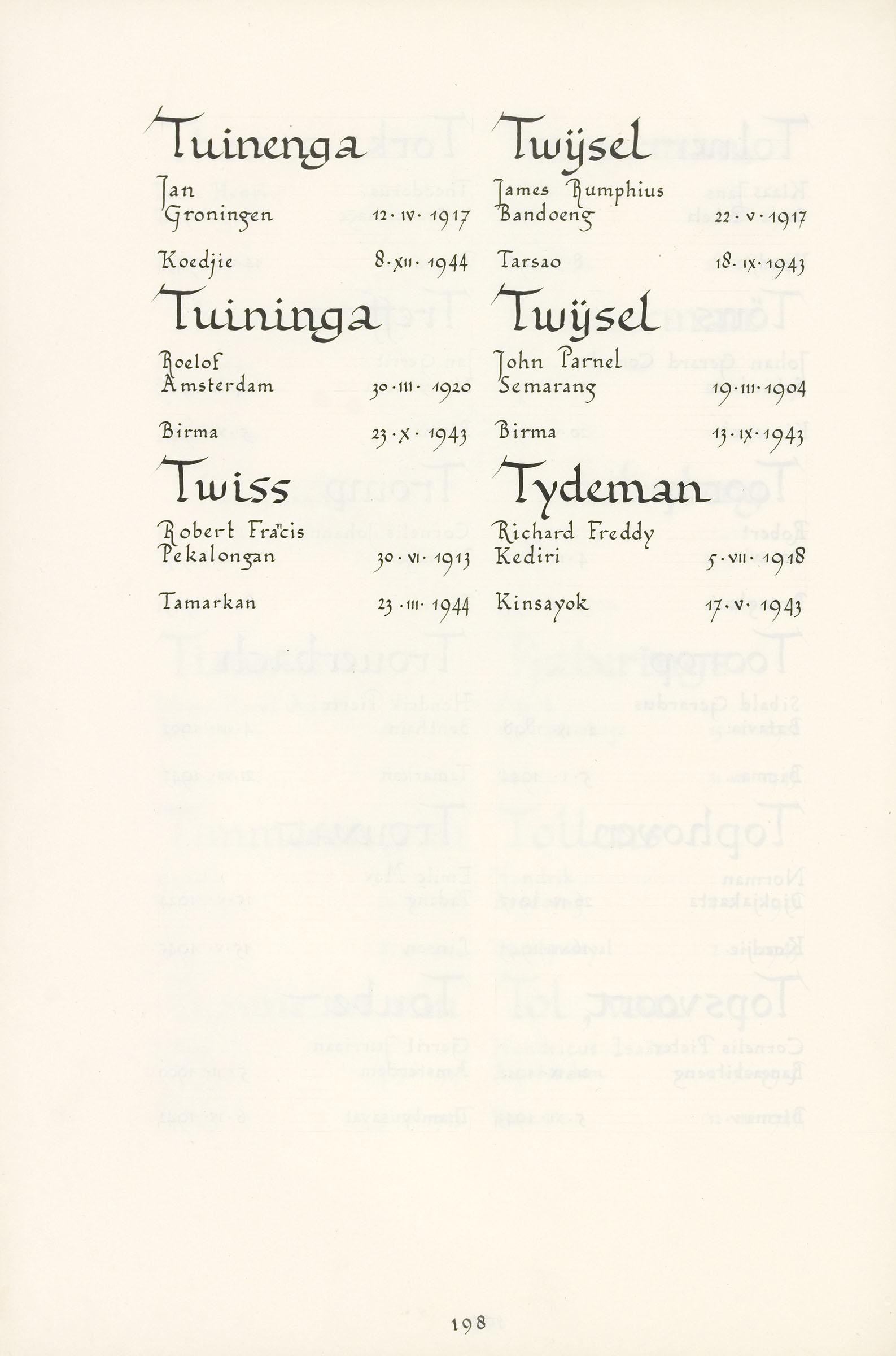 Jan Tuinenga Geboortedatum: 12-04-1917 Geboorteplaats: Groningen Datum van overlijden: 08-12-1944 Plaats van overlijden: Koedjie (Thailand) Beroep: Soldaat Groep: Koninklijk Nederlands-Indisch Leger en Indisch Verzet Pagina: 198 Reactie toevoegen JavaScript moet ingeschakeld zijn om dit formulier te kunnen gebruiken. Comment Over tekstopmaak Platte tekst Geen HTML toegestaan. Regels en alinea's worden automatisch gesplitst. Web- en e-mailadressen worden automatisch naar links omgezet. Laat dit veld leeg blader download Permalink