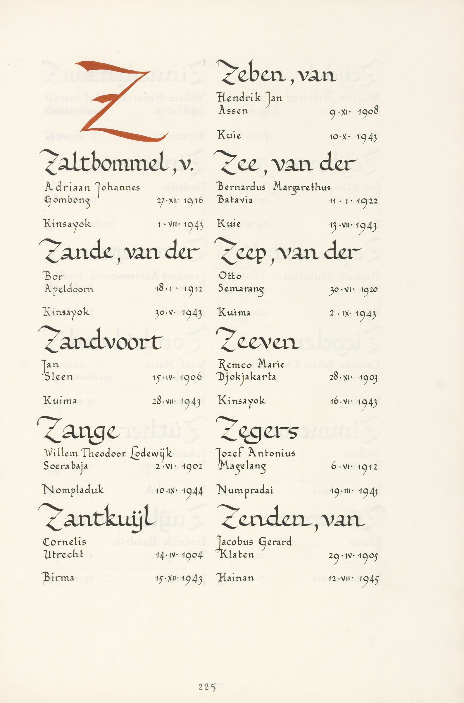 Jan Zandvoort Geboortedatum: 15-04-1906 Geboorteplaats: Sleen Datum van overlijden: 28-07-1943 Plaats van overlijden: Kwima (Thailand) Beroep: Sergeant-majoor Groep: Koninklijk Nederlands-Indisch Leger en Indisch Verzet Pagina: 225 Reactie toevoegen JavaScript moet ingeschakeld zijn om dit formulier te kunnen gebruiken. Comment Over tekstopmaak Platte tekst Geen HTML toegestaan. Regels en alinea's worden automatisch gesplitst. Web- en e-mailadressen worden automatisch naar links omgezet. Laat dit veld leeg blader download Permalink