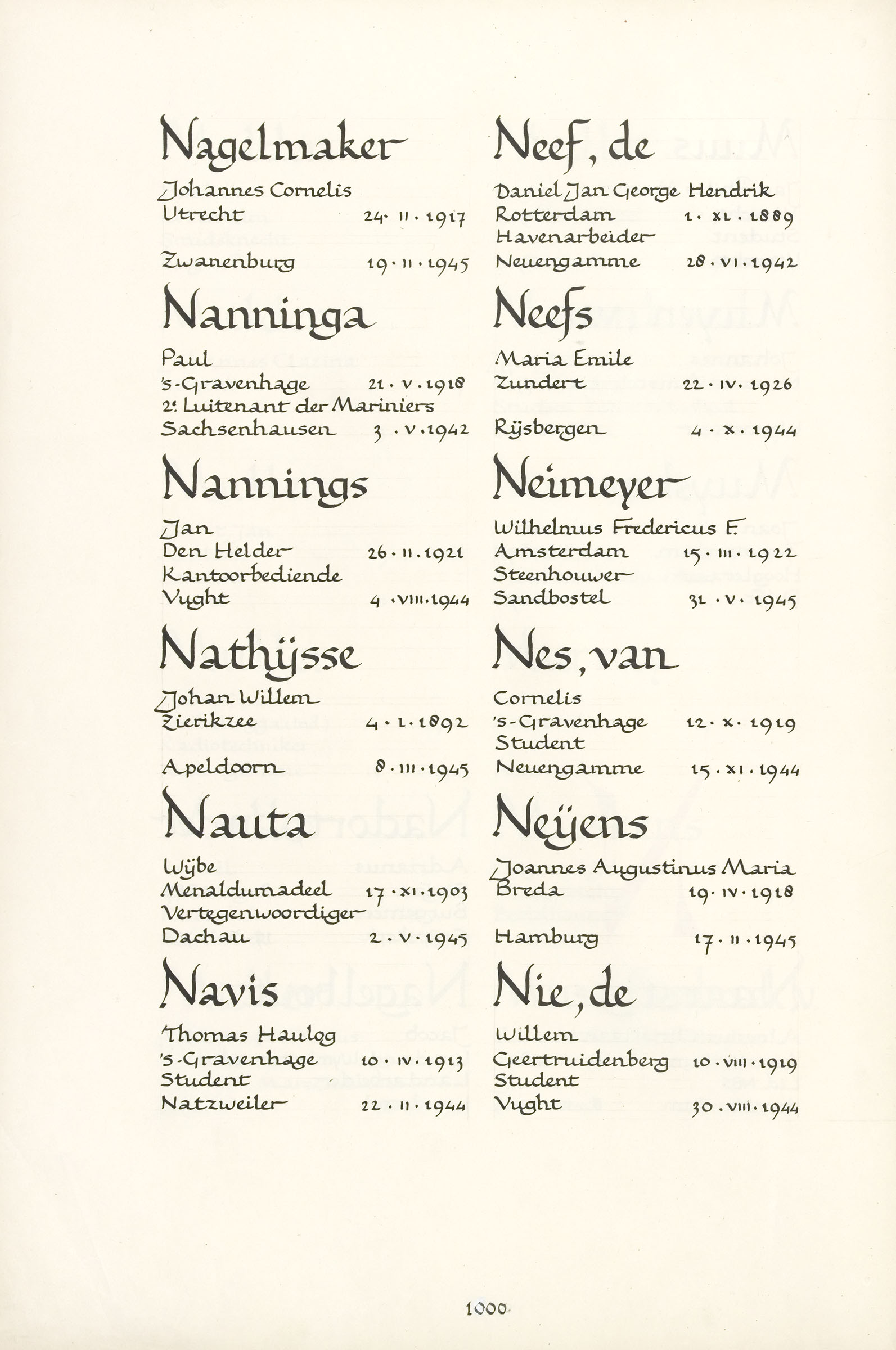 Joannes Augustinus Maria Neijens Geboortedatum: 19-04-1918 Geboorteplaats: Breda Datum van overlijden: 17-02-1945 Plaats van overlijden: Neuengamme Beroep: Bedrijfsleider Groep: Verzet Pagina: 1000 Reactie toevoegen JavaScript moet ingeschakeld zijn om dit formulier te kunnen gebruiken. Comment Over tekstopmaak Platte tekst Geen HTML toegestaan. Regels en alinea's worden automatisch gesplitst. Web- en e-mailadressen worden automatisch naar links omgezet. Laat dit veld leeg blader download Permalink