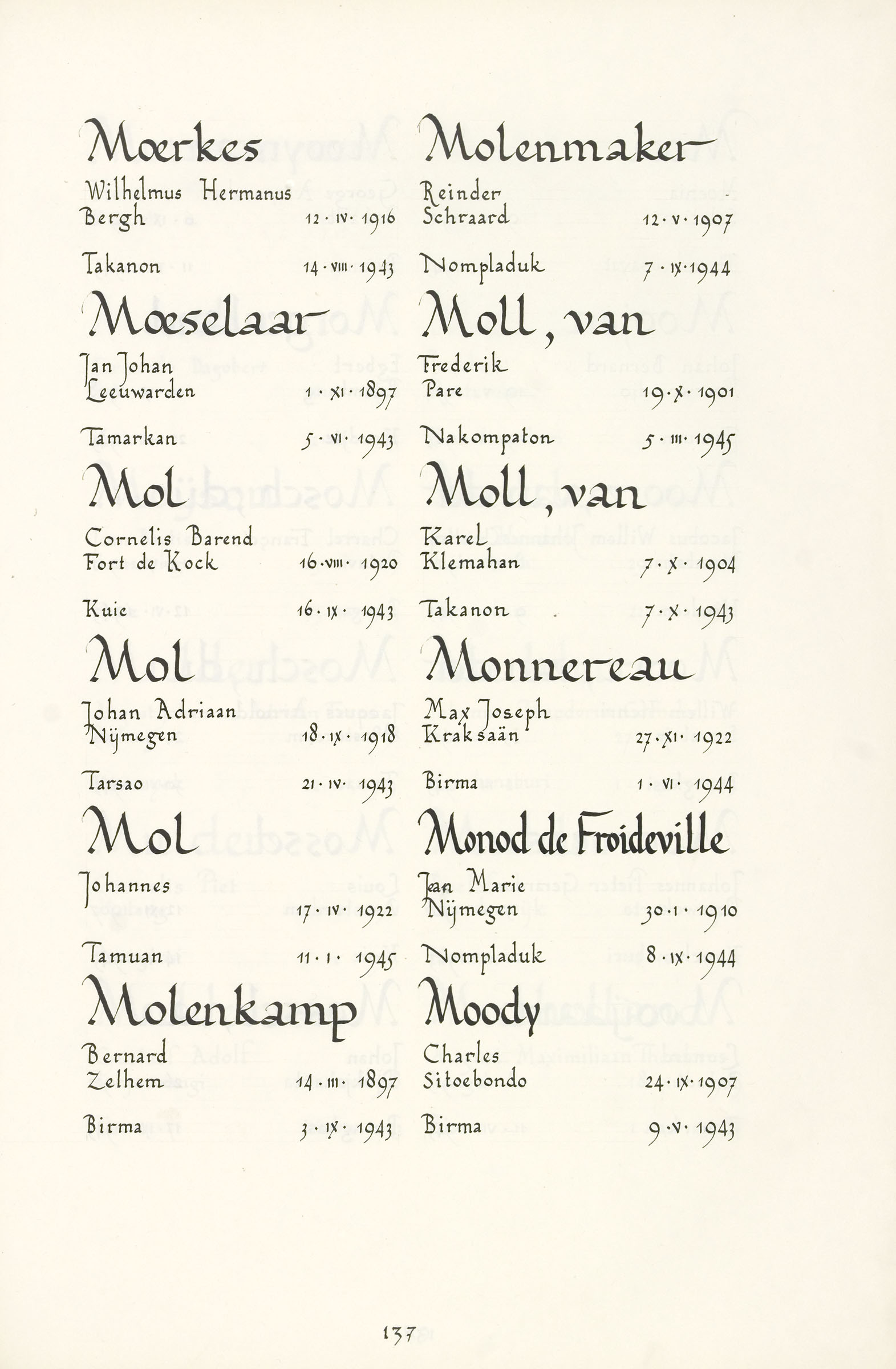 Johan Adriaan Mol Geboortedatum: 18-09-1918 Geboorteplaats: Nijmegen Datum van overlijden: 21-04-1943 Plaats van overlijden: Tarsao (Thailand) Beroep: Sergeant Groep: Koninklijk Nederlands-Indisch Leger en Indisch Verzet Pagina: 137 John Reactie toevoegen JavaScript moet ingeschakeld zijn om dit formulier te kunnen gebruiken. Comment Over tekstopmaak Platte tekst Geen HTML toegestaan. Regels en alinea's worden automatisch gesplitst. Web- en e-mailadressen worden automatisch naar links omgezet. Laat dit veld leeg blader download Permalink