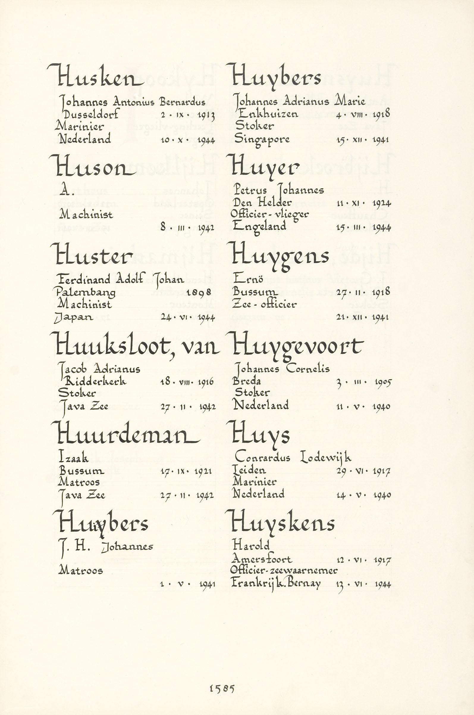 Johannes Cornelis Huygevoort Geboortedatum: 03-03-1905 Geboorteplaats: Breda Datum van overlijden: 11-05-1940 Plaats van overlijden: Nederland Beroep: Stoker Groep: Koninklijke Marine Pagina: 1585 Reactie toevoegen JavaScript moet ingeschakeld zijn om dit formulier te kunnen gebruiken. Comment Over tekstopmaak Platte tekst Geen HTML toegestaan. Regels en alinea's worden automatisch gesplitst. Web- en e-mailadressen worden automatisch naar links omgezet. Laat dit veld leeg blader download Permalink