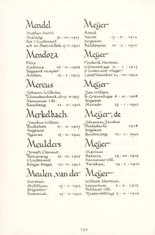 Joseph Clement Meulders Geboortedatum: 25-07-1915 Geboorteplaats: Semarang (Java) Datum van overlijden: 21-03-1942 Plaats van overlijden: Ronga Ronga Beroep: 1e Luitenant Groep: Koninklijk Nederlands-Indisch Leger en Indisch Verzet Pagina: 290 Willy woudenberg Carla Hendriks Piet van der Veen Joop van der Burg Thea Meulders Diana Hertogh Fred van der Burg Else van Asperen Vervenne-Meulders Ilse, achterkleindochter José heijmans-van Helvoirt Reactie toevoegen JavaScript moet ingeschakeld zijn om dit formulier te kunnen gebruiken. Comment Over tekstopmaak Platte tekst Geen HTML toegestaan. Regels en alinea's worden automatisch gesplitst. Web- en e-mailadressen worden automatisch naar links omgezet. Laat dit veld leeg blader download Permalink