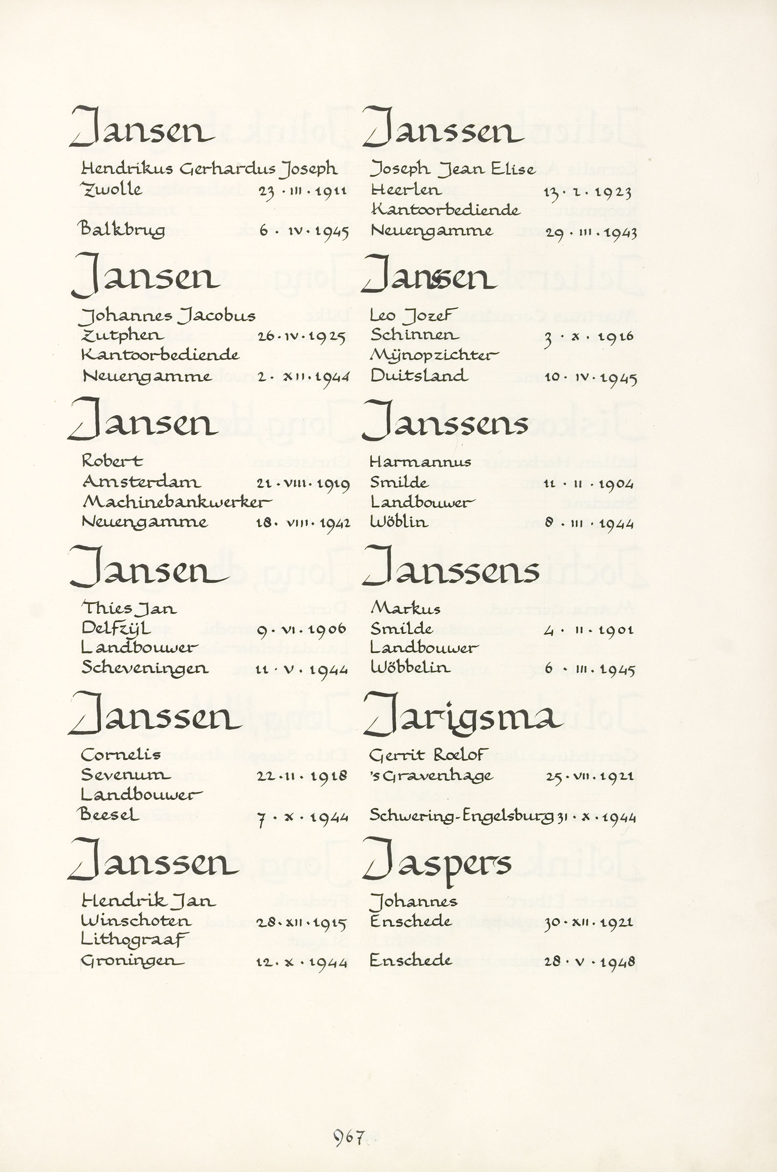 Joseph Jean Elise Janssen Geboortedatum: 13-01-1923 Geboorteplaats: Heerlen Datum van overlijden: 29-03-1943 Plaats van overlijden: Neuengamme Beroep: Kantoorbediende Groep: Verzet Pagina: 967 Reactie toevoegen JavaScript moet ingeschakeld zijn om dit formulier te kunnen gebruiken. Comment Over tekstopmaak Platte tekst Geen HTML toegestaan. Regels en alinea's worden automatisch gesplitst. Web- en e-mailadressen worden automatisch naar links omgezet. Laat dit veld leeg blader download Permalink