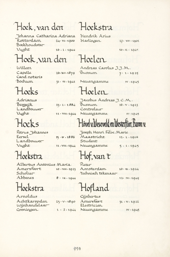 Jozef Felix Henri Marie van Hövell van Wezeveld en Westerflier Geboortedatum: 12-01-1916 Geboorteplaats: Maastricht Datum van overlijden: 05-01-1945 Plaats van overlijden: Neuengamme Beroep: Student Groep: Verzet Pagina: 959 Oberon van Hovell Annie, Michiel & Dominic van Hövell Stephanie van Hövell-Bergsma en Jelmer Reactie toevoegen JavaScript moet ingeschakeld zijn om dit formulier te kunnen gebruiken. Comment Over tekstopmaak Platte tekst Geen HTML toegestaan. Regels en alinea's worden automatisch gesplitst. Web- en e-mailadressen worden automatisch naar links omgezet. Laat dit veld leeg blader download Permalink