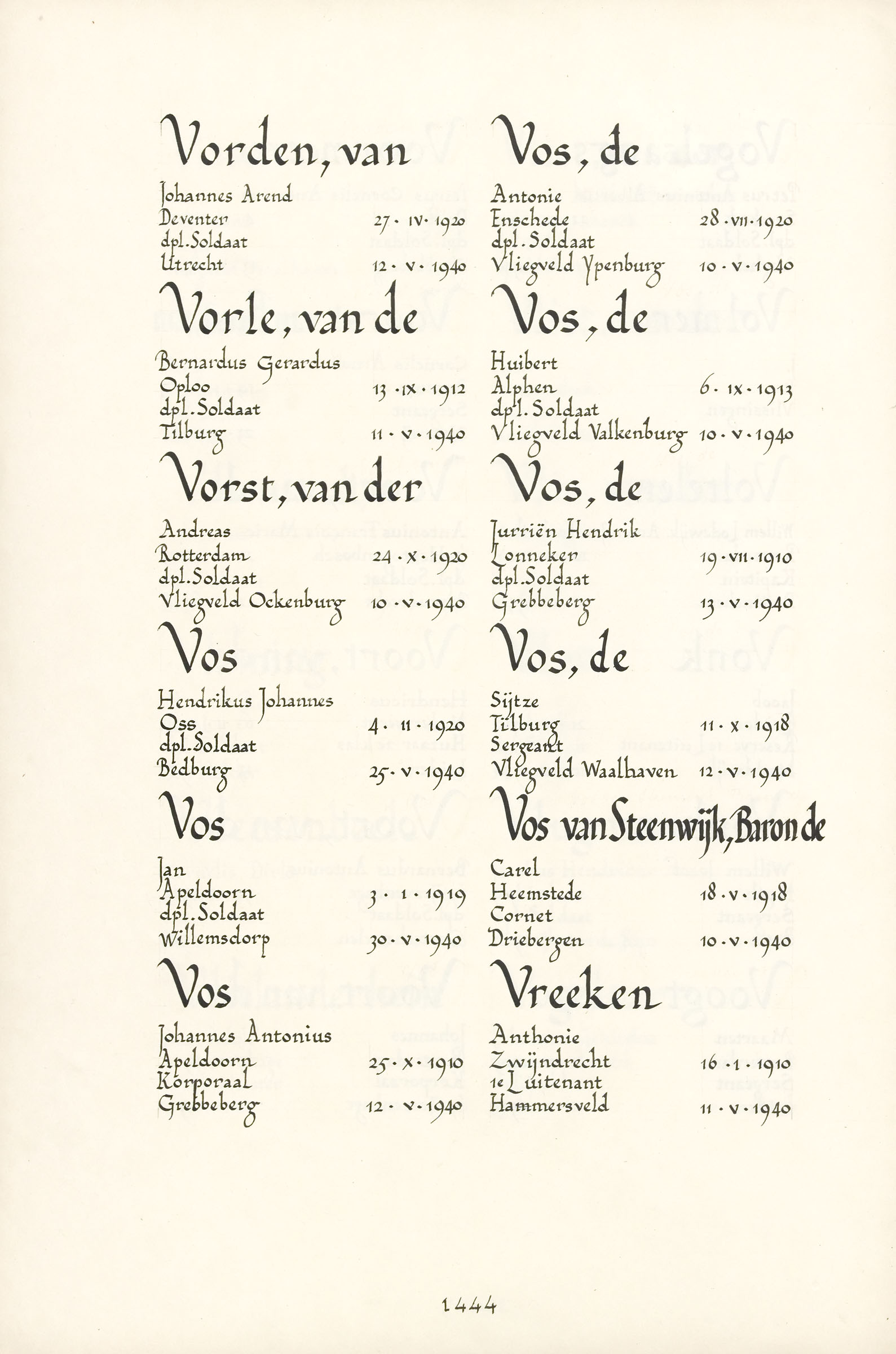 Jurriën Hendrik de Vos Geboortedatum: 19-07-1910 Geboorteplaats: Lonneker Datum van overlijden: 13-05-1940 Plaats van overlijden: Grebbeberg Beroep: dpl. Soldaat Groep: Koninklijke Landmacht Pagina: 1444 Linda Moes de Vos Reactie toevoegen JavaScript moet ingeschakeld zijn om dit formulier te kunnen gebruiken. Comment Over tekstopmaak Platte tekst Geen HTML toegestaan. Regels en alinea's worden automatisch gesplitst. Web- en e-mailadressen worden automatisch naar links omgezet. Laat dit veld leeg blader download Permalink