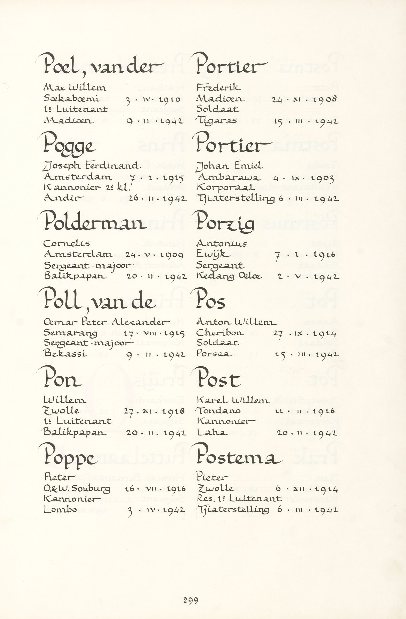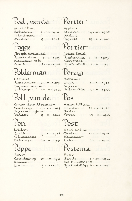 Karel Willem Post Geboortedatum: 11-02-1916 Geboorteplaats: Tondano Datum van overlijden: 20-02-1942 Plaats van overlijden: Laha Beroep: Kanonnier Groep: Koninklijk Nederlands-Indisch Leger en Indisch Verzet Pagina: 299 Reactie toevoegen JavaScript moet ingeschakeld zijn om dit formulier te kunnen gebruiken. Comment Over tekstopmaak Platte tekst Geen HTML toegestaan. Regels en alinea's worden automatisch gesplitst. Web- en e-mailadressen worden automatisch naar links omgezet. Laat dit veld leeg blader download Permalink