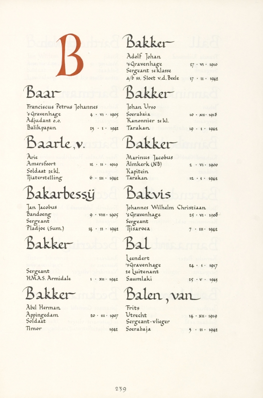 Marinus Jacobus Bakker Geboortedatum: 02-06-1900 Geboorteplaats: Almkerk (N.B.) Datum van overlijden: 12-01-1942 Plaats van overlijden: Tarakan (Borneo) Beroep: Kapitein Groep: Koninklijk Nederlands-Indisch Leger en Indisch Verzet Pagina: 239 Ik ben de eersts (klein)zoon van zijn enige dochter Marijke en tevens naar hem vernoemd; Marinus Jacobus en we noemen hem Koos Eline Danique Reactie toevoegen JavaScript moet ingeschakeld zijn om dit formulier te kunnen gebruiken. Comment Over tekstopmaak Platte tekst Geen HTML toegestaan. Regels en alinea's worden automatisch gesplitst. Web- en e-mailadressen worden automatisch naar links omgezet. Laat dit veld leeg blader download Permalink