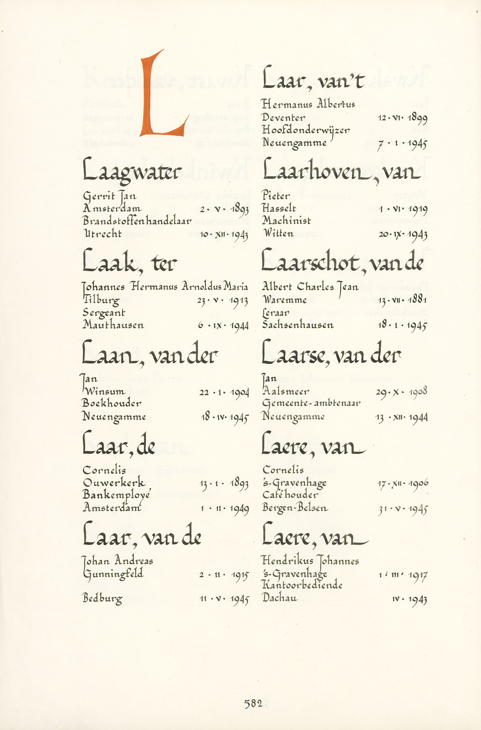 Johannes Hermanus Arnoldus Maria ter Laak Geboortedatum: 23-05-1913 Geboorteplaats: Tilburg Datum van overlijden: 06-09-1944 Plaats van overlijden: Mauthausen Beroep: Sergeant Groep: Verzet Pagina: 582 Joop ter Laak (oomzegger) Adrienne Reactie toevoegen JavaScript moet ingeschakeld zijn om dit formulier te kunnen gebruiken. Comment Over tekstopmaak Platte tekst Geen HTML toegestaan. Regels en alinea's worden automatisch gesplitst. Web- en e-mailadressen worden automatisch naar links omgezet. Laat dit veld leeg blader download Permalink