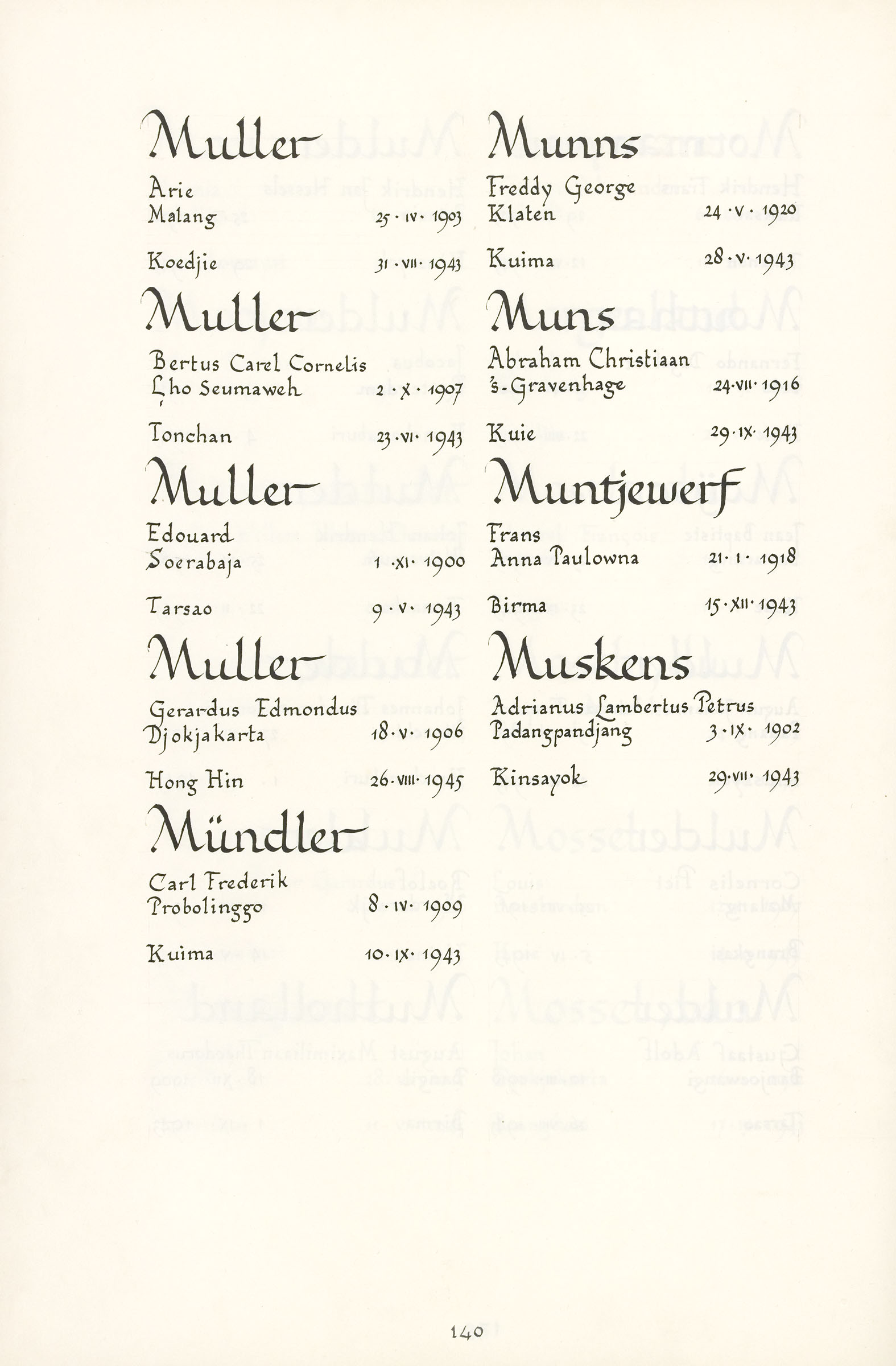 Carl Frederik Mündler Geboortedatum: 08-04-1909 Geboorteplaats: Probolinggo (Java) Datum van overlijden: 10-09-1943 Plaats van overlijden: Kwima (Thailand) Beroep: Soldaat Groep: Koninklijk Nederlands-Indisch Leger en Indisch Verzet Pagina: 140 Reactie toevoegen JavaScript moet ingeschakeld zijn om dit formulier te kunnen gebruiken. Comment Over tekstopmaak Platte tekst Geen HTML toegestaan. Regels en alinea's worden automatisch gesplitst. Web- en e-mailadressen worden automatisch naar links omgezet. Laat dit veld leeg blader download Permalink