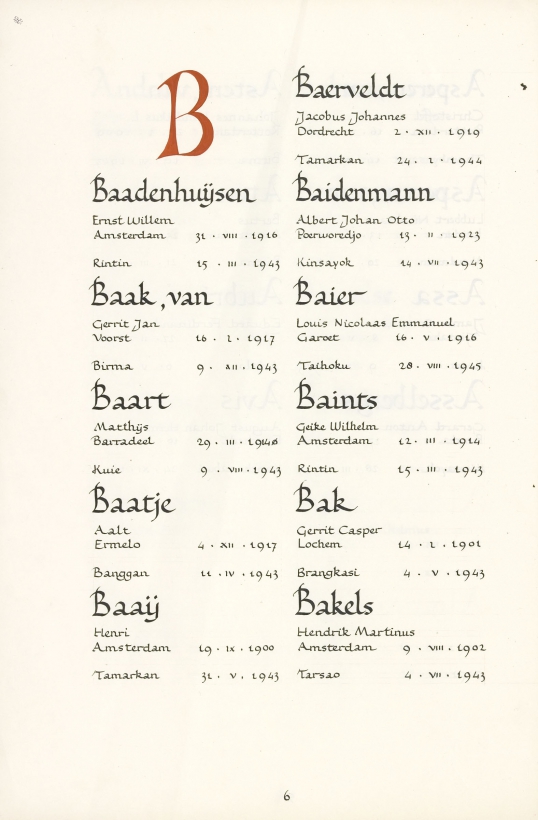 Aalt Baatje Geboortedatum: 04-12-1917 Geboorteplaats: Ermelo Datum van overlijden: 11-04-1943 Plaats van overlijden: Banggan (Thailand) Beroep: Brigadier Groep: Koninklijk Nederlands-Indisch Leger en Indisch Verzet Pagina: 6 Reactie toevoegen JavaScript moet ingeschakeld zijn om dit formulier te kunnen gebruiken. Comment Over tekstopmaak Platte tekst Geen HTML toegestaan. Regels en alinea's worden automatisch gesplitst. Web- en e-mailadressen worden automatisch naar links omgezet. Laat dit veld leeg blader download Permalink