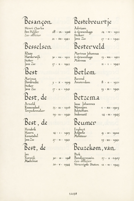 Marinus Johannes Besterveld Geboortedatum: 13-08-1921 Geboorteplaats: Den Haag Datum van overlijden: 11-01-1942 Plaats van overlijden: Celebes Zee Beroep: Matroos Groep: Koninklijke Marine Pagina: 1498 Reactie toevoegen JavaScript moet ingeschakeld zijn om dit formulier te kunnen gebruiken. Comment Over tekstopmaak Platte tekst Geen HTML toegestaan. Regels en alinea's worden automatisch gesplitst. Web- en e-mailadressen worden automatisch naar links omgezet. Laat dit veld leeg blader download Permalink