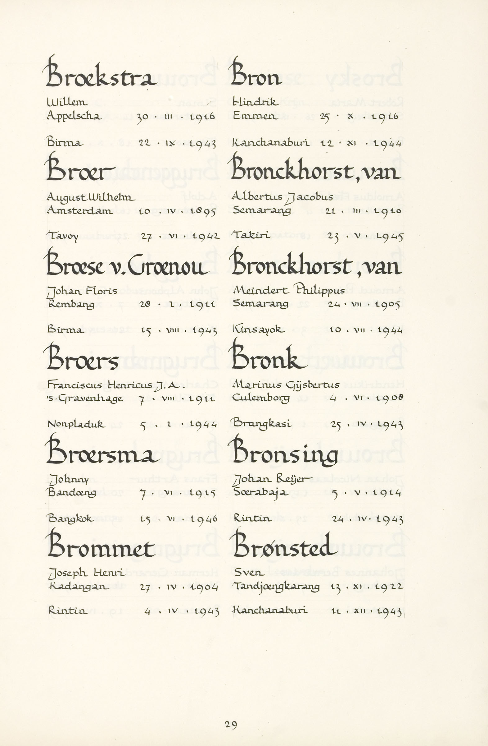 Joseph Henri Brommet Geboortedatum: 27-04-1904 Geboorteplaats: Kandangan Datum van overlijden: 04-04-1943 Plaats van overlijden: Rintin (Thailand) Beroep: Soldaat Groep: Koninklijk Nederlands-Indisch Leger en Indisch Verzet Pagina: 29 Reactie toevoegen JavaScript moet ingeschakeld zijn om dit formulier te kunnen gebruiken. Comment Over tekstopmaak Platte tekst Geen HTML toegestaan. Regels en alinea's worden automatisch gesplitst. Web- en e-mailadressen worden automatisch naar links omgezet. Laat dit veld leeg blader download Permalink