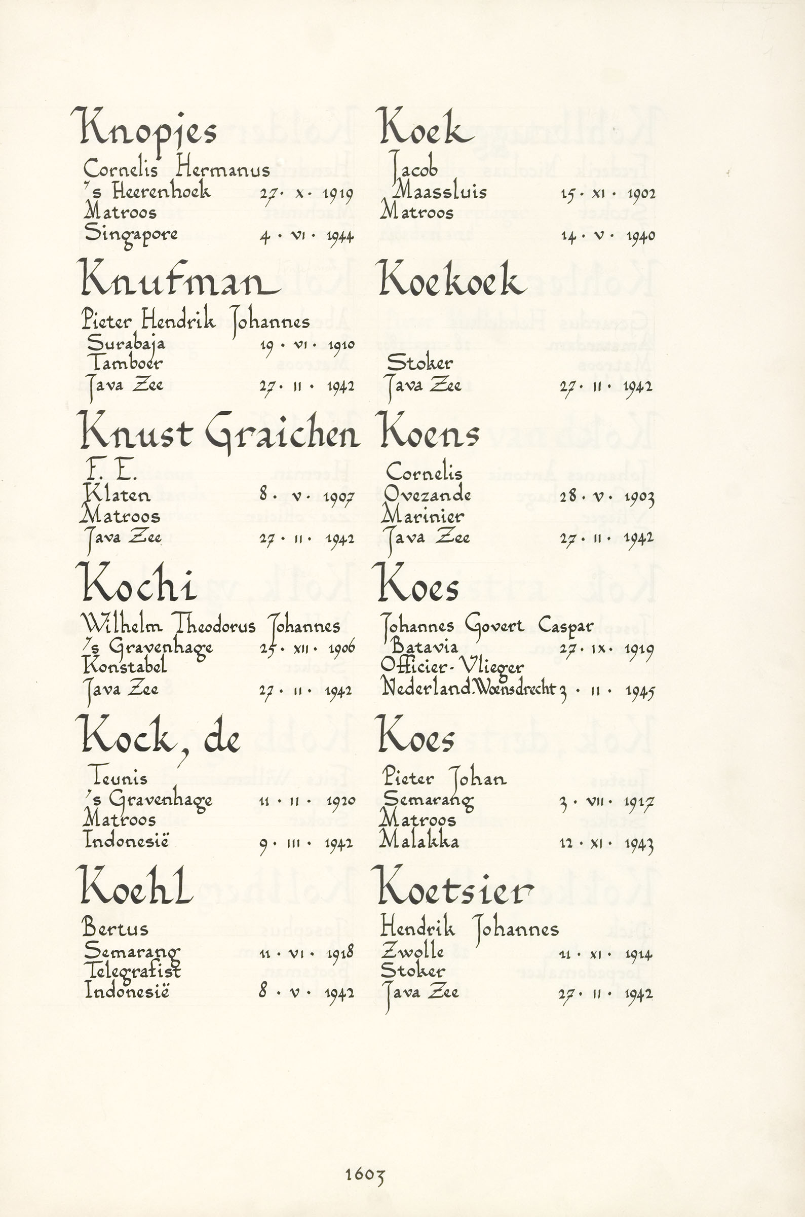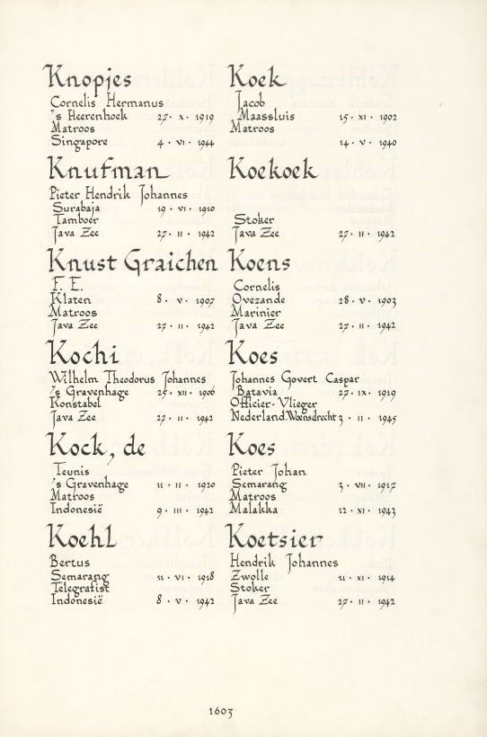 Teunis de Kock Geboortedatum: 11-02-1920 Geboorteplaats: Den Haag Datum van overlijden: 09-03-1942 Plaats van overlijden: Straat Madura Beroep: Matroos Groep: Koninklijke Marine Pagina: 1603 Reactie toevoegen JavaScript moet ingeschakeld zijn om dit formulier te kunnen gebruiken. Comment Over tekstopmaak Platte tekst Geen HTML toegestaan. Regels en alinea's worden automatisch gesplitst. Web- en e-mailadressen worden automatisch naar links omgezet. Laat dit veld leeg blader download Permalink