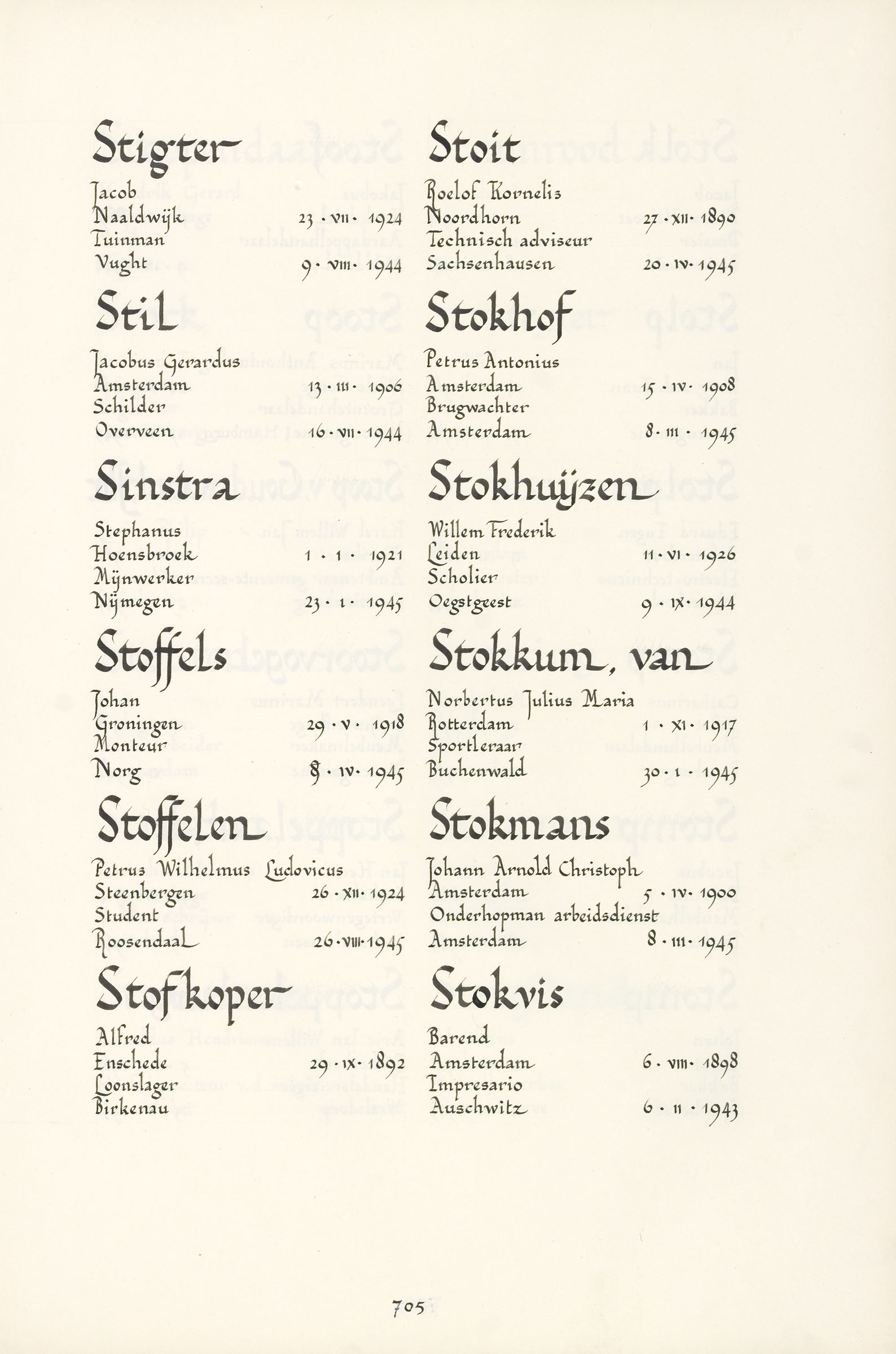 Norbertus Julius Maria van Stokkum Geboortedatum: 01-11-1917 Geboorteplaats: Rotterdam Datum van overlijden: 30-01-1945 Plaats van overlijden: Buchenwald Beroep: Sportleraar Groep: Verzet Pagina: 705 Mascha van Stokkum Peter Mom Patricia Wittekamp Reactie toevoegen JavaScript moet ingeschakeld zijn om dit formulier te kunnen gebruiken. Comment Over tekstopmaak Platte tekst Geen HTML toegestaan. Regels en alinea's worden automatisch gesplitst. Web- en e-mailadressen worden automatisch naar links omgezet. Laat dit veld leeg blader download Permalink