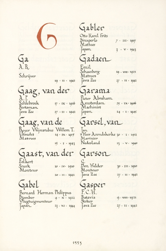 Otto Karel Frits Gabler Geboortedatum: 07-03-1907 Geboorteplaats: Dinxperlo Datum van overlijden: 03-05-1943 Plaats van overlijden: Japan Beroep: Matroos Groep: Koninklijke Marine Pagina: 1553 Lideke Gabler Jan Willem Ketelaar Annelieke Ketelaar Reactie toevoegen JavaScript moet ingeschakeld zijn om dit formulier te kunnen gebruiken. Comment Over tekstopmaak Platte tekst Geen HTML toegestaan. Regels en alinea's worden automatisch gesplitst. Web- en e-mailadressen worden automatisch naar links omgezet. Laat dit veld leeg blader download Permalink