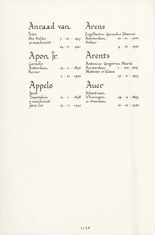 Sebastiaan Auer Geboortedatum: 29-10-1893 Geboorteplaats: Vlissingen Datum van overlijden: 16-09-1940 Plaats van overlijden: Atlantische Oceaan Beroep: 2e Stuurman Groep: Koopvaardij Pagina: 1138 Reactie toevoegen JavaScript moet ingeschakeld zijn om dit formulier te kunnen gebruiken. Comment Over tekstopmaak Platte tekst Geen HTML toegestaan. Regels en alinea's worden automatisch gesplitst. Web- en e-mailadressen worden automatisch naar links omgezet. Laat dit veld leeg blader download Permalink