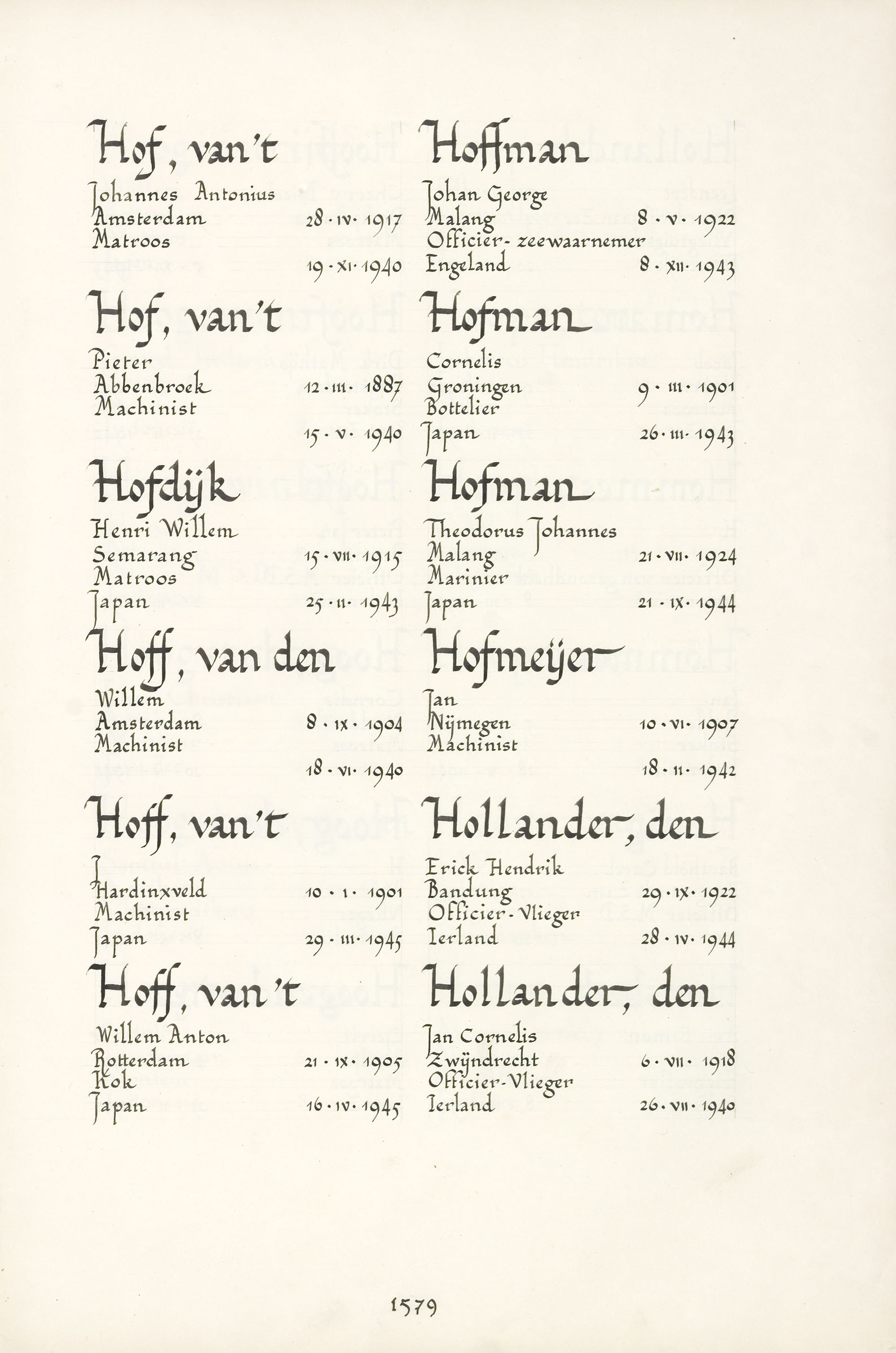 Theodorus Johannes Hofman Geboortedatum: 21-07-1924 Geboorteplaats: Malang (Java) Datum van overlijden: 21-09-1944 Plaats van overlijden: Japan Beroep: Marinier Groep: Koninklijke Marine Pagina: 1579 hoeven Reactie toevoegen JavaScript moet ingeschakeld zijn om dit formulier te kunnen gebruiken. Comment Over tekstopmaak Platte tekst Geen HTML toegestaan. Regels en alinea's worden automatisch gesplitst. Web- en e-mailadressen worden automatisch naar links omgezet. Laat dit veld leeg blader download Permalink