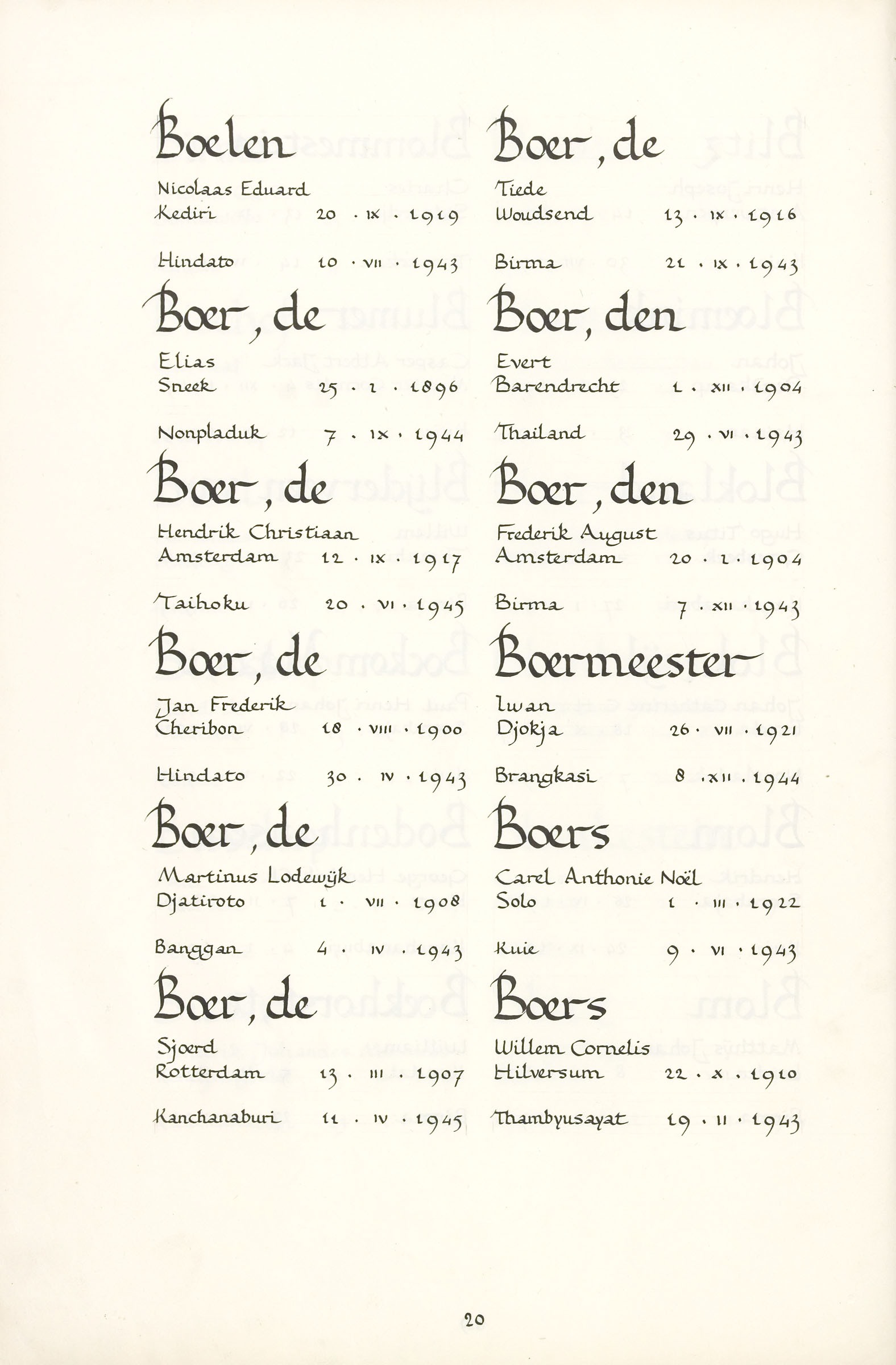 Tiede de Boer Geboortedatum: 13-09-1916 Geboorteplaats: Woudsend (Wymbritseradeel) Datum van overlijden: 21-09-1943 Plaats van overlijden: Birma Beroep: Brigadier-telegrafist Groep: Koninklijk Nederlands-Indisch Leger en Indisch Verzet Pagina: 20 Enne de Boer Tiede de Boer Reactie toevoegen JavaScript moet ingeschakeld zijn om dit formulier te kunnen gebruiken. Comment Over tekstopmaak Platte tekst Geen HTML toegestaan. Regels en alinea's worden automatisch gesplitst. Web- en e-mailadressen worden automatisch naar links omgezet. Laat dit veld leeg blader download Permalink