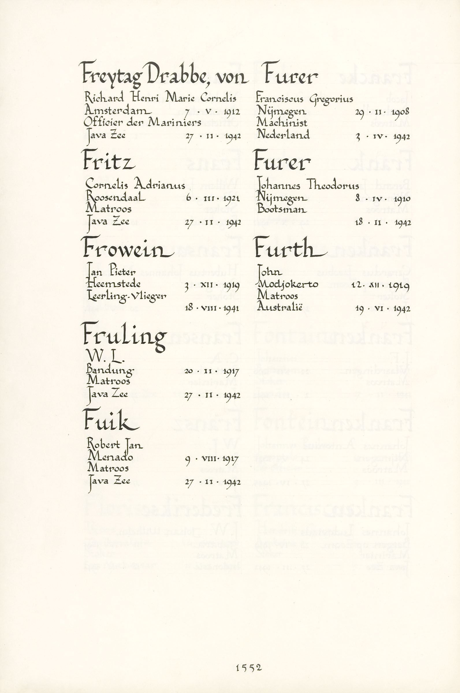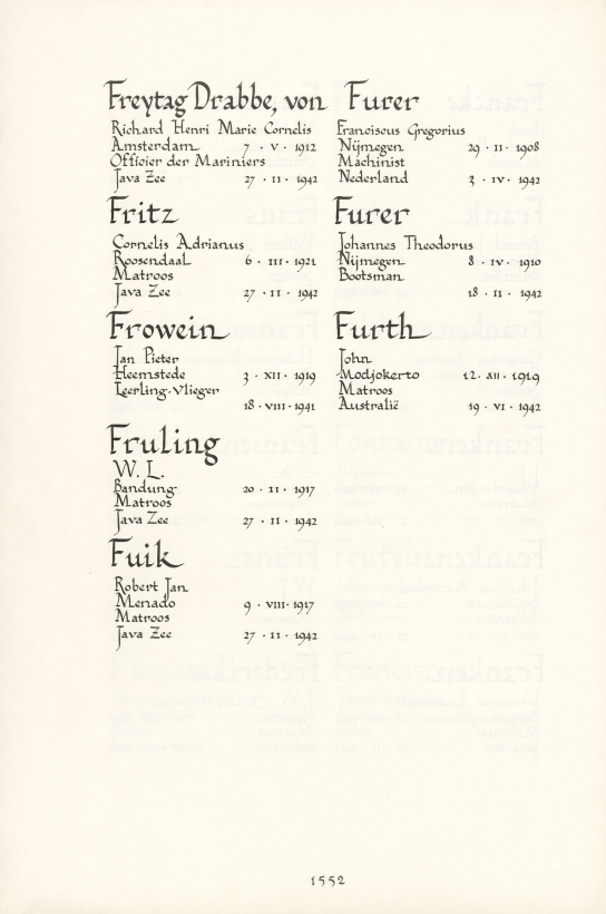 Wilhelm Ludwig Fruling Geboortedatum: 20-02-1917 Geboorteplaats: Bandoeng Datum van overlijden: 27-02-1942 Plaats van overlijden: Javazee Beroep: Matroos Groep: Koninklijke Marine Pagina: 1552 Reactie toevoegen JavaScript moet ingeschakeld zijn om dit formulier te kunnen gebruiken. Comment Over tekstopmaak Platte tekst Geen HTML toegestaan. Regels en alinea's worden automatisch gesplitst. Web- en e-mailadressen worden automatisch naar links omgezet. Laat dit veld leeg blader download Permalink