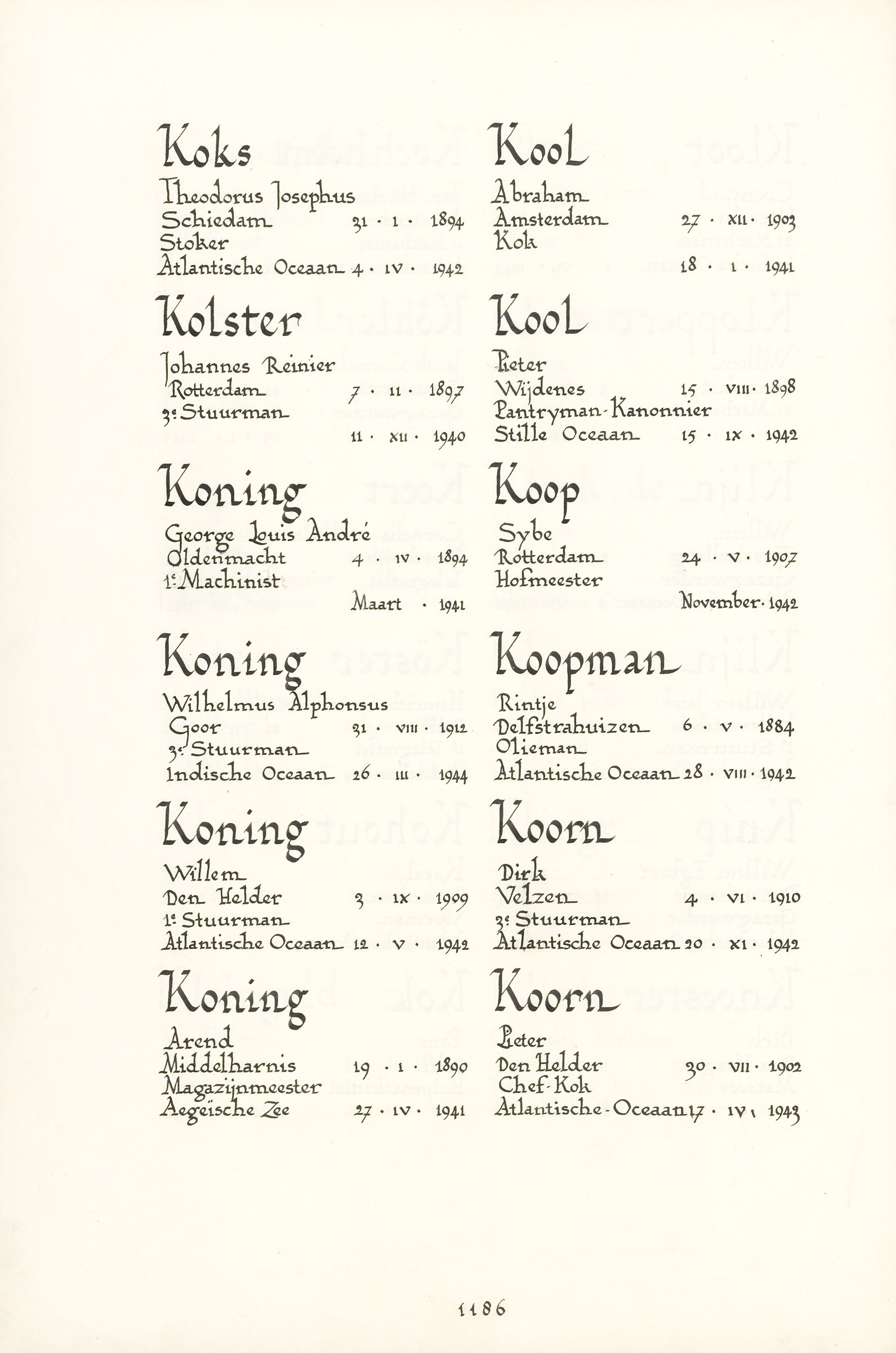 Wilhelmus Alphonsus Koning Geboortedatum: 31-08-1912 Geboorteplaats: Goor Datum van overlijden: 26-03-1944 Plaats van overlijden: Indische Oceaan Beroep: 3e Stuurman Groep: Koopvaardij Pagina: 1186 Reactie toevoegen JavaScript moet ingeschakeld zijn om dit formulier te kunnen gebruiken. Comment Over tekstopmaak Platte tekst Geen HTML toegestaan. Regels en alinea's worden automatisch gesplitst. Web- en e-mailadressen worden automatisch naar links omgezet. Laat dit veld leeg blader download Permalink